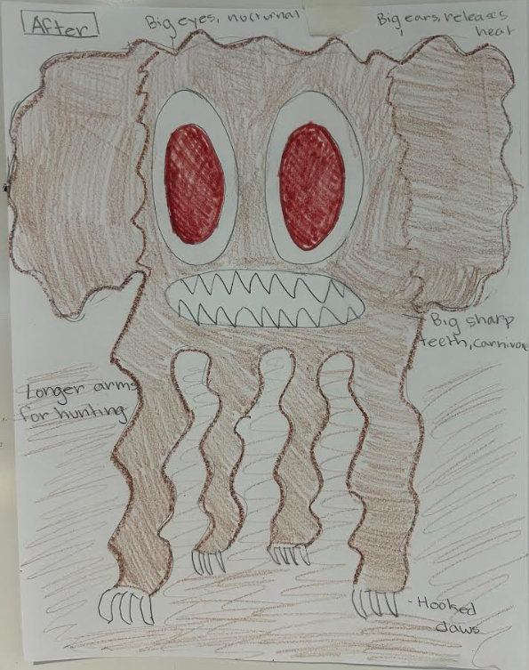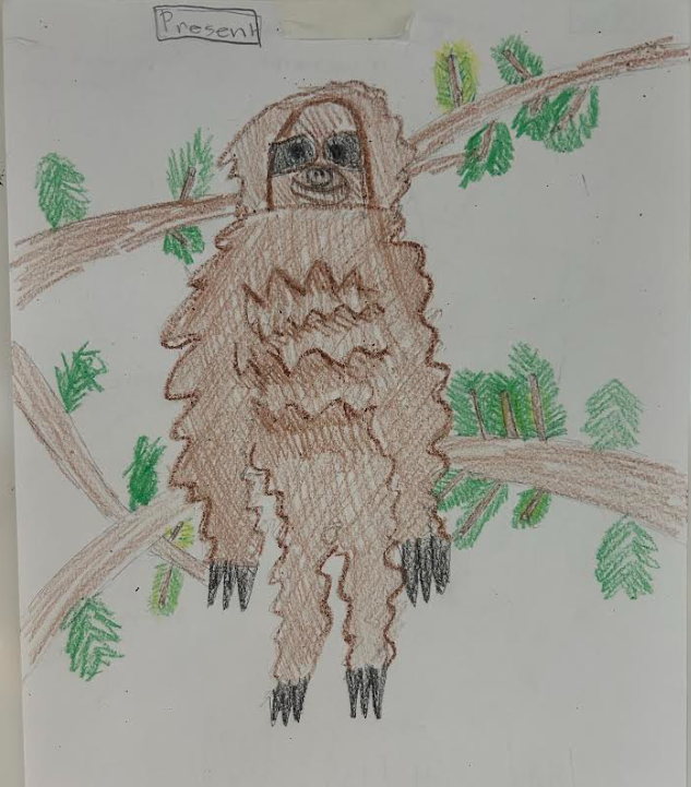 The 3-toed sloth will change in several small and big ways to compat with the new Amazon environment. It will gain big eyes and become nocturnal because it will be to hot to hunt during the day. It will get big eyes to release body heat. It will have longer arms for hunting and bigger sharper teeth to eat different varieties of food. It will also gain hooked claws as it climbs trees less and hunts for animals more. It's fur will also change color to resemble the new ground color more.