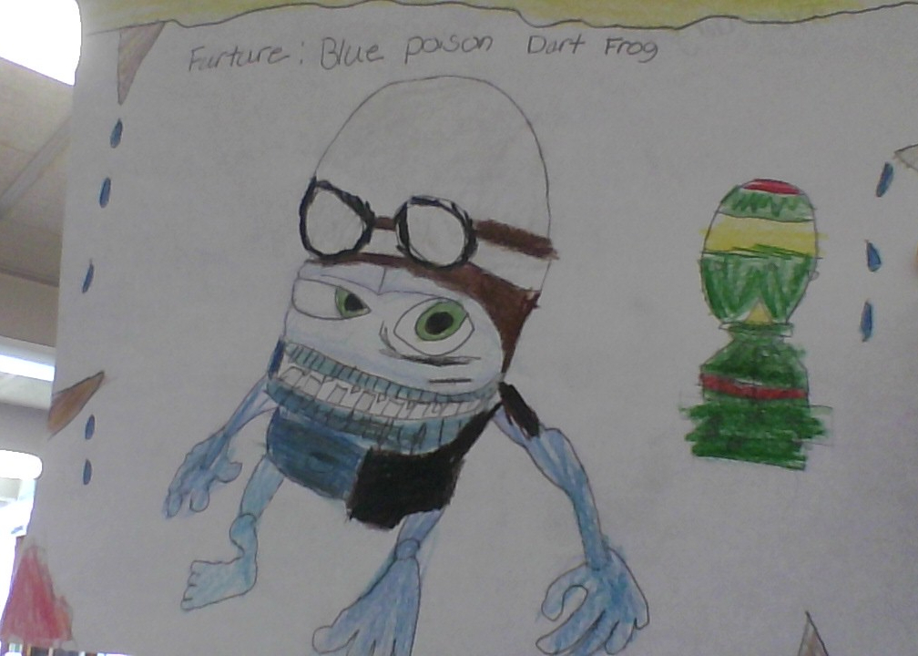 In the future the blue poison dart frog will go underground, mutate their arms and legs into human hand and human legs, and build a nuke and take over human kind and become the leaders of the world, also they will eat the same like termites, mites, flies, beetles, spiders, and caterpillars and ect, also their environment will be in a cave because the top of the cave is sand. And the problem die .
