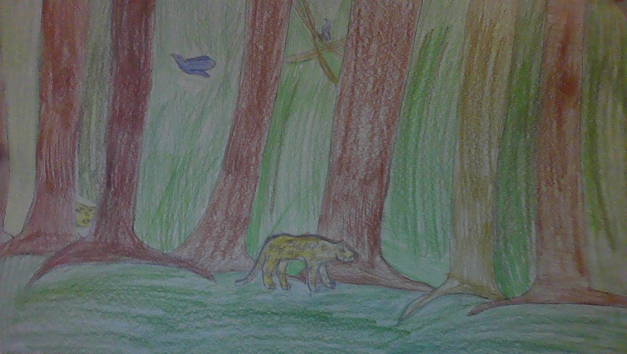 Right now, jaguars live mainly in swamps and wooded areas. Jaguars largest numbers are in the Amazon rain forest. Their colors are normally orange to tan, with black spots and a black stripe down the center of their backs. They eat capybara, deer, birds, and fish. About 1,000 years in the future, Jaguars do not live in the rain forest. Now, they live in the deserts. They now survive on lizards, birds, and bugs. They can crack open cacti and go days without any water. This is because they are smaller. Jaguars are now known as Desert Jaguars. They are smaller, bigger ears, only have spots on their backs and now have a sandy color. They live underground during the day, only coming out from sunrise to sunset.