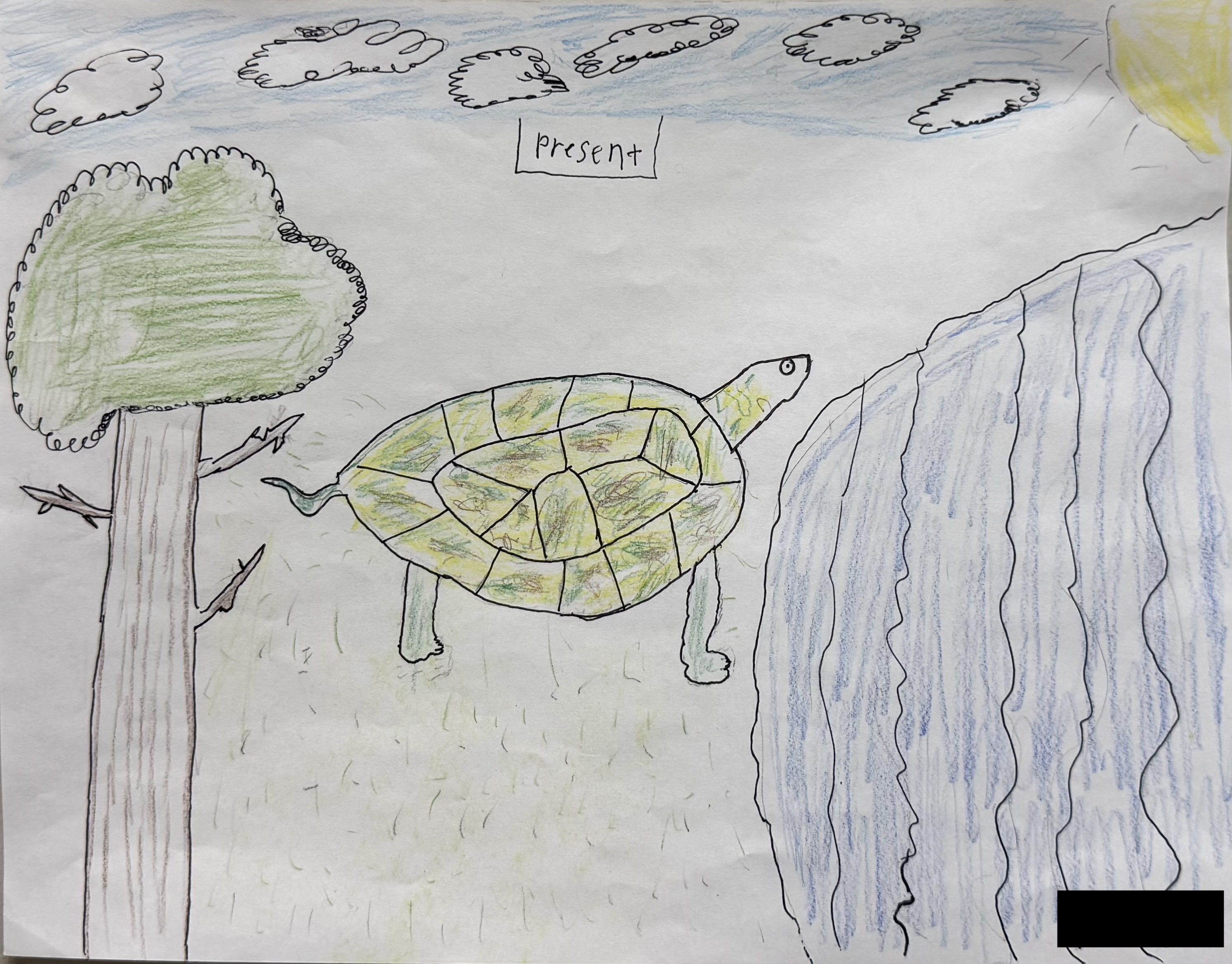 The yellow spotted river turtle is an endangered turtle species in the amazon. I drew what it looks like now and what it will look like in the future based on how our environment is. I made the turtle adapt things like its color, claws, neck, and even its lungs. All to help it survive in the future.
