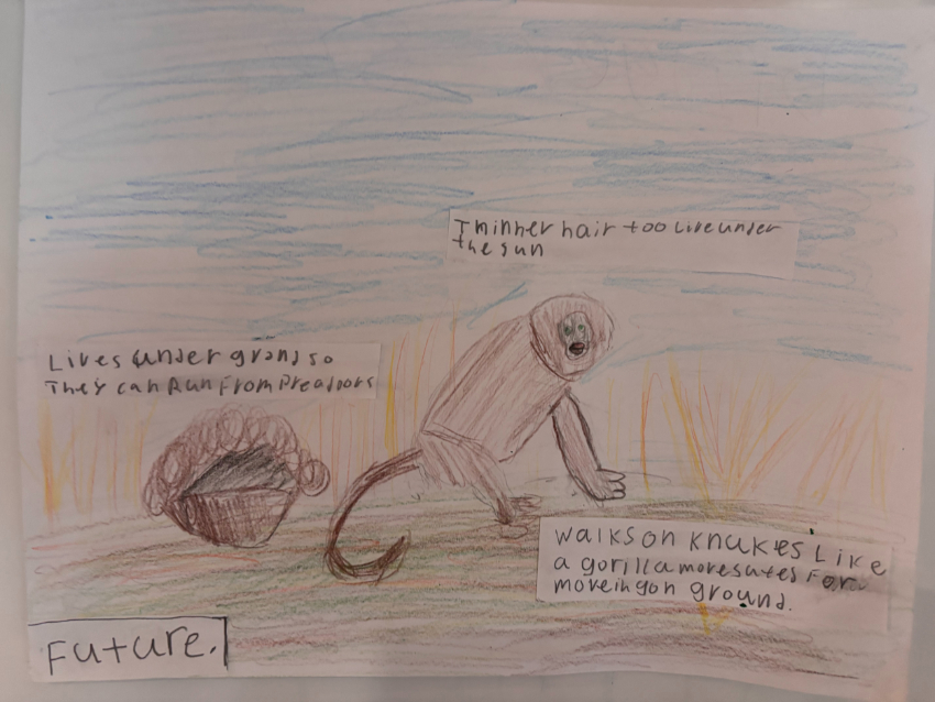 The Titi monkey is found across the amazon rainforest. They live in the canopy of the Forrest. But now that the Forrest is turing into a savanna they will have to change. Some ways they could change is moving to leaving on the ground in dens under the ground. They could walk on there knuckles so they can move on the ground better. They would have thinner fur to live under the sun. Stronger teath to eat roots insted of fruits.