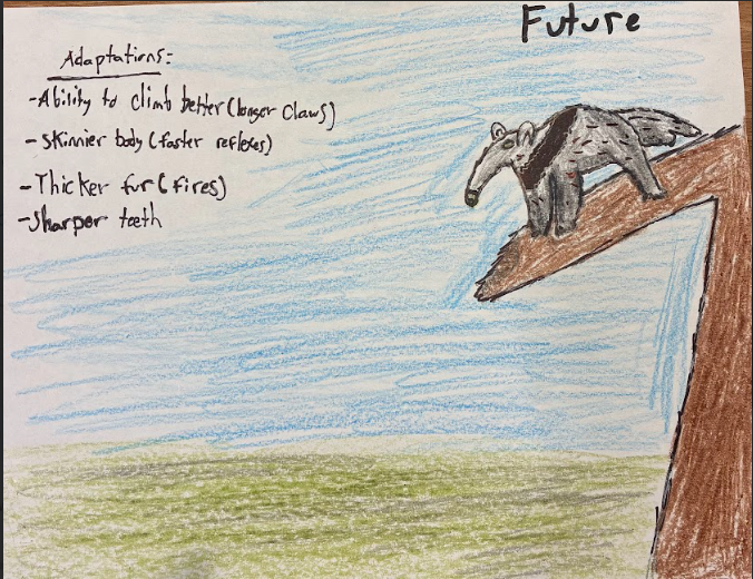 I researched Ant eaters and how they need to adapt to thrive. I learned that ant eaters are slow and have small claws, I also learned that they need sharper teeth and thicker fur. The reason for these is because of many reasons. Firstly ant eaters need to become faster because the main cause of death is from humans by getting ran over, etc. They need thicker fur because they die from fires so this fur will allow them to become fire resistant. If they get bigger claws they can climb trees to escape predators and natural disasters. Ant eaters in fact have no teeth so it would be a good addition in case they cant access ants.
