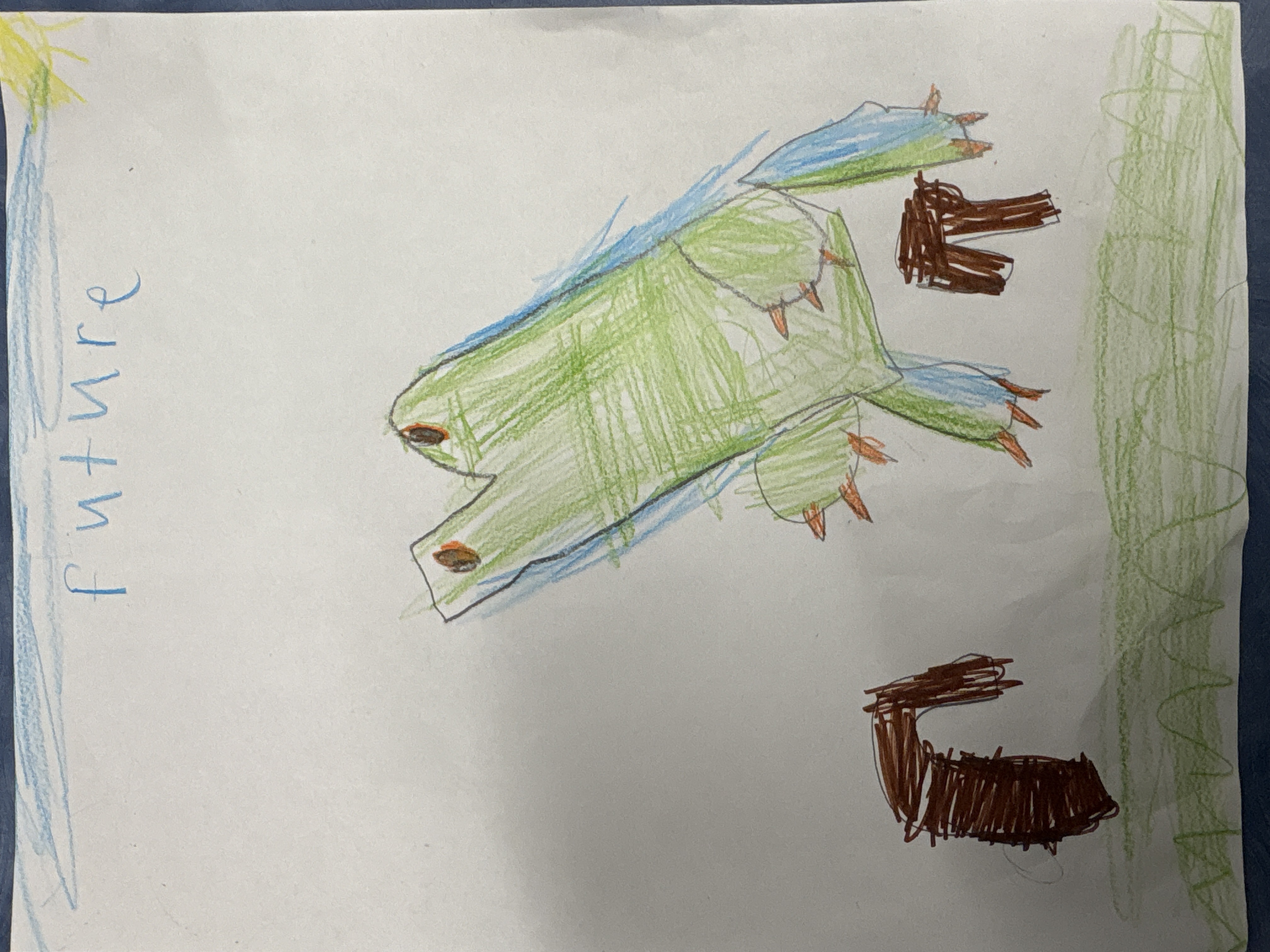 A red eye tree frog is found in the rain forest. Currently they have blue arms and they are colorful and they have sticky finger tips. Frogs eat milk and fruits; they are eaten by insects and birds and snakes. They are known for sleeping in the morning. They transfer pollen when they climb. I think frogs will live on land and mammals will be small compared to frogs. The frog will be bigger than their predators.