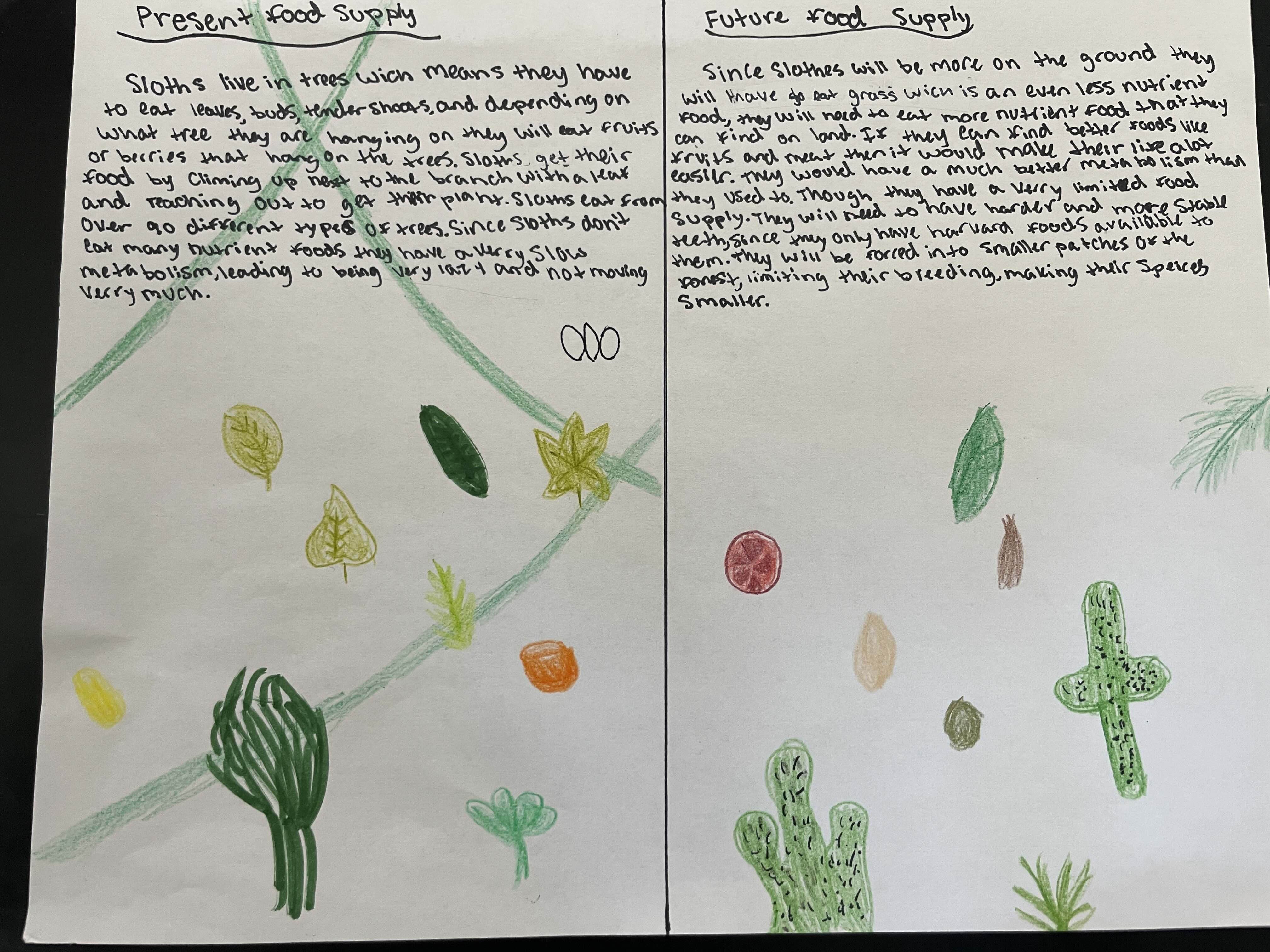 In the future, Sloths will live in the savanna and they will have to adapt a lot. Sloths will have to adapt to living on the land, since there will be deforestation. Sloths will live in the savannah, and food will be very scarce. Sloths will have to develop some self defense since there will be more vicious animals. They will have to develop sharp claws to walk on the ground, and as a defence mechanism. As of right now sloths live in the rainforest and they eat leaves and very low nutrient food, causing them to have a very slow metabolism. Sloths will need to eat more nutrient foods in order to survive in the savannah. The savanna is much hotter than the rainforest, so they need to develop shorter hair and.Sloths will need to live by a water source. As you can see sloths will need to adapt.