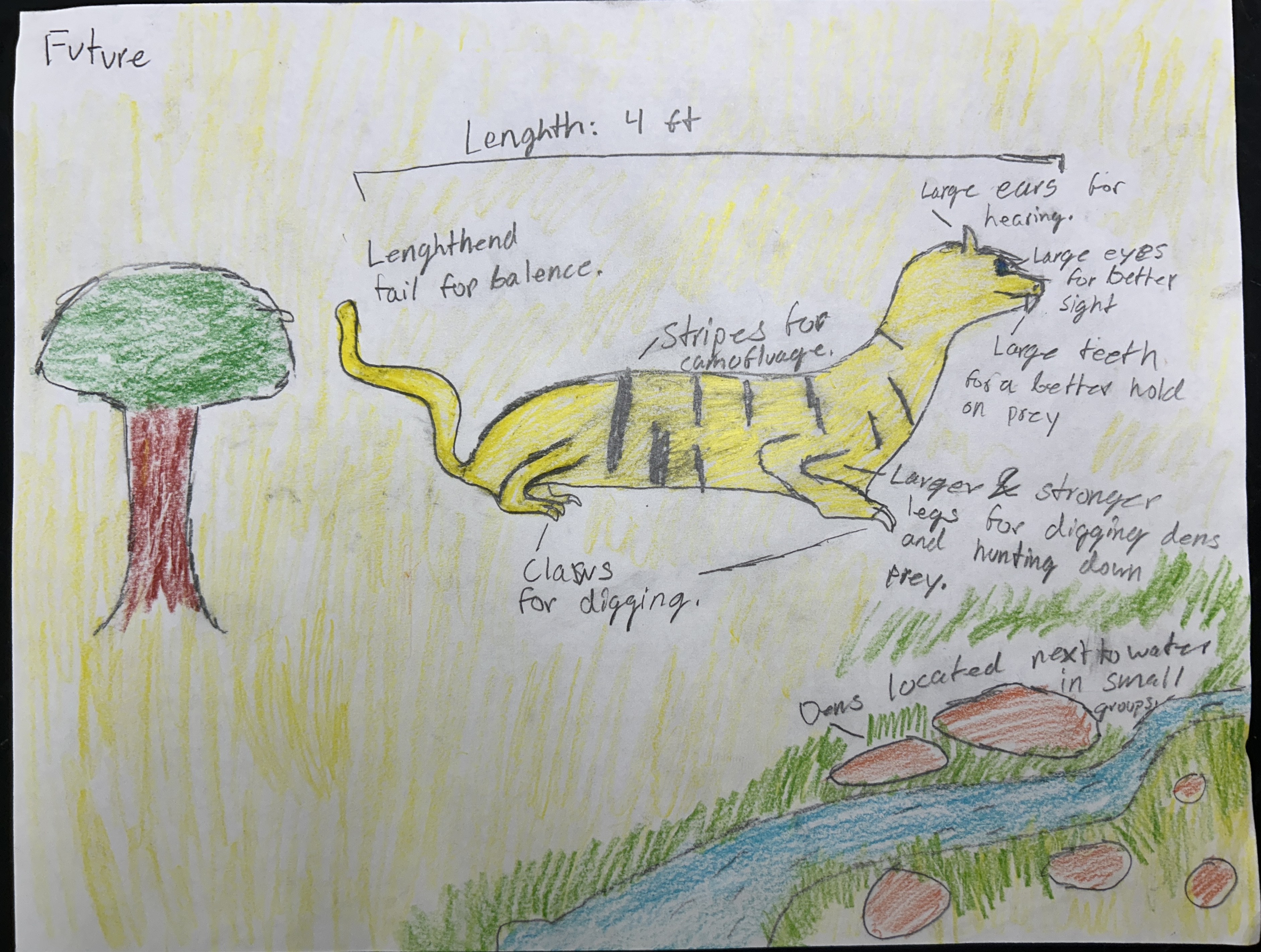Over the next 1,000 years, I think the Rainforest will turn into a savanna. The savanna will have yellow grass, and few trees. The savanna has very small and few rivers, and some fish swim in them. The small streams are a good place for lots of insects, so the otters (Now Weasels.) will be eating insects.