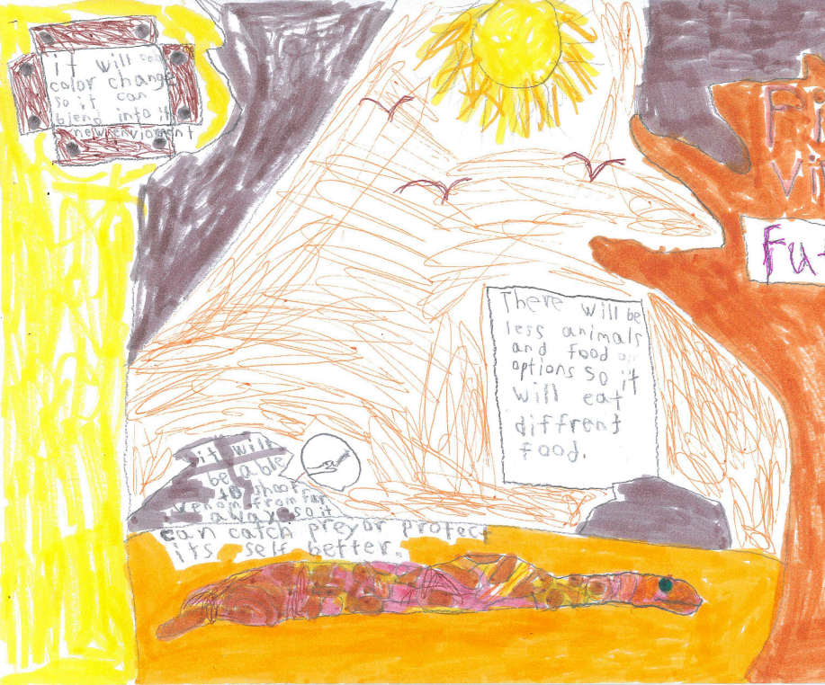 Future: Now a pit viper will be more of a dull color to camouflage in its new habitat. The pit viper will now be able to shoot venom from far away to attack better or defend itself.