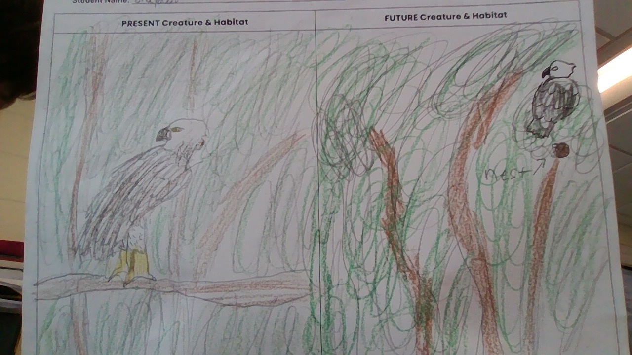 The animal I am writing about is the harpy eagle. It lives in the rain forest environment. Recently, there has been an environmental shift such as climate change.