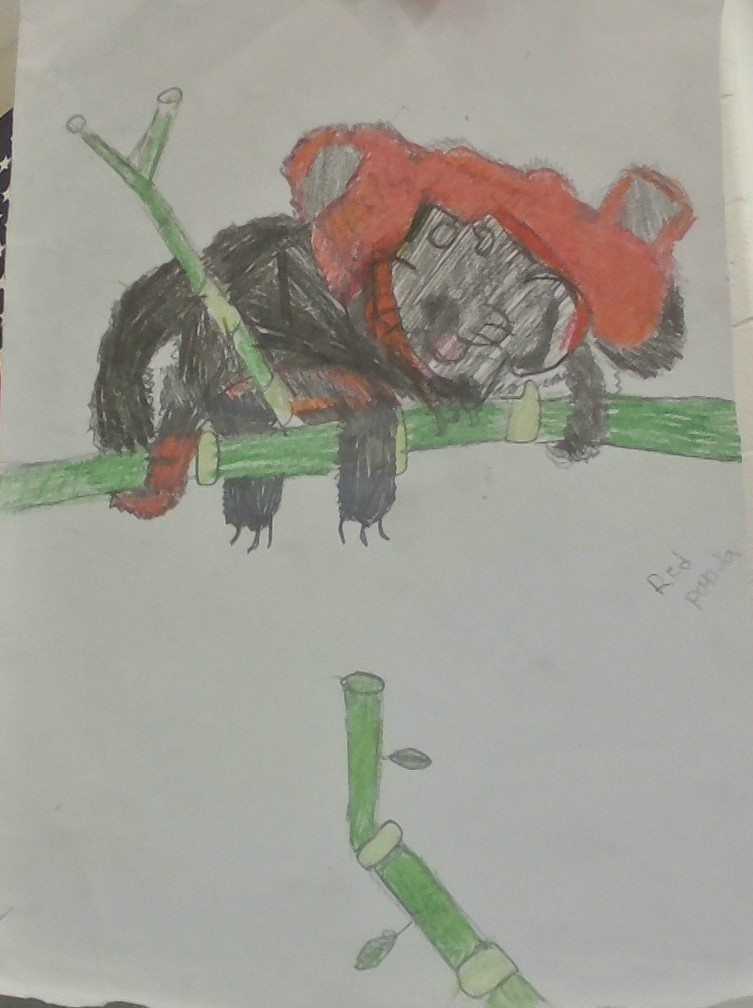 In the future, they will have less forests and more ash that can harm the red panda. On top of that, bamboo will be pretty much, or completely, gone. This makes starvation high and survival low. They are already close to extinction from food shortage so there is a low chance for them to die off. Fires, ash, and food shortage make this a high chance for a future situation. This makes them have darker skin to blend in and a smaller stomach.