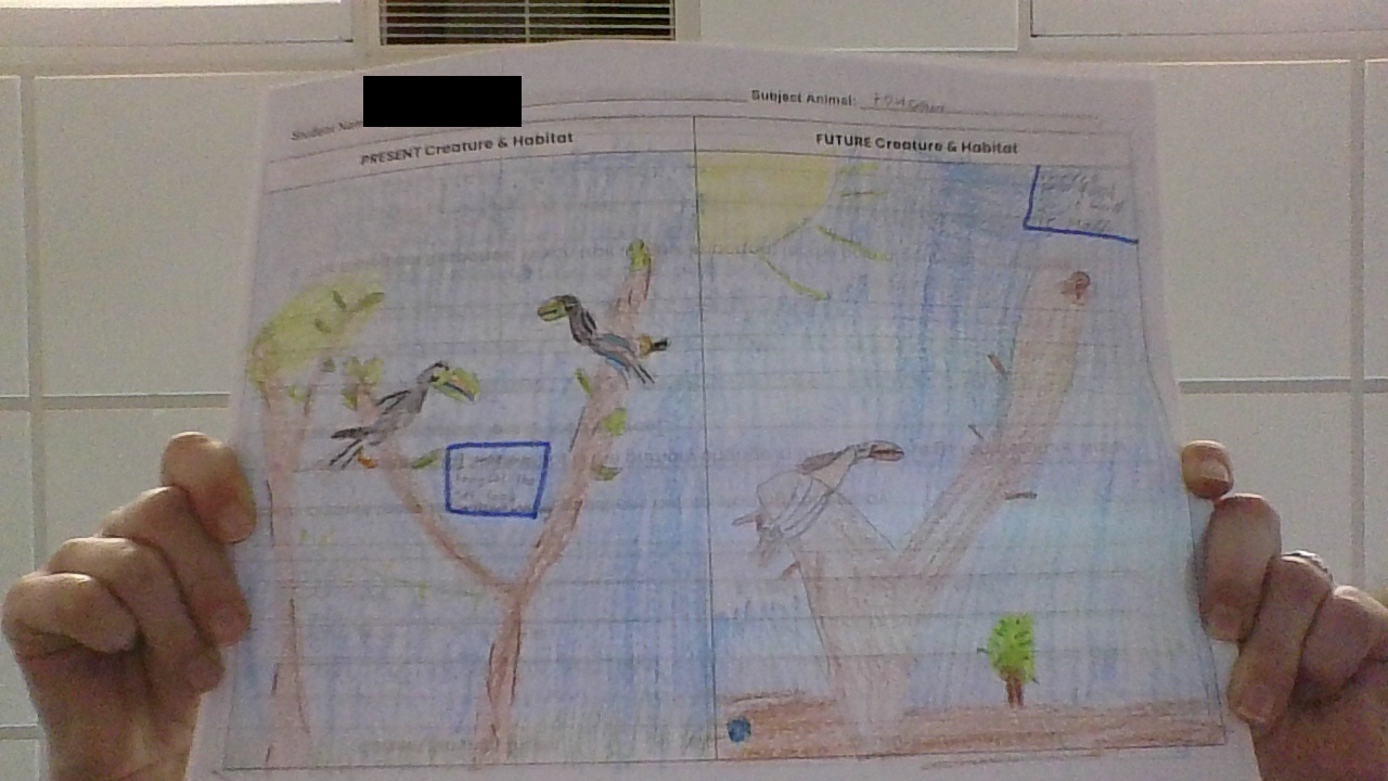 The animal I am writing about is the Toucan. It lives in the Rainforest environment. Recently, there has been an environmental shift such as climate change.