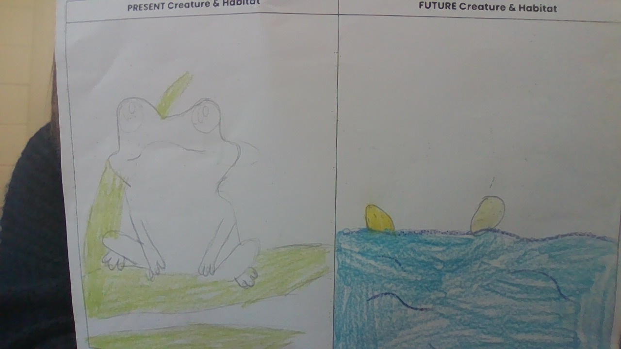 The animal I am writing about is the glass frog. It lives in the rainforest environment. Recently, there has been an environmental shift such as climate change.