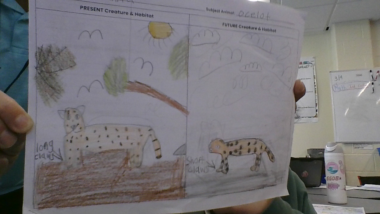 The animal I am writing about is the ocelot. It lives in the rainforest environment. Recently, there has been an environmental shift such as the temperature getting warmer.