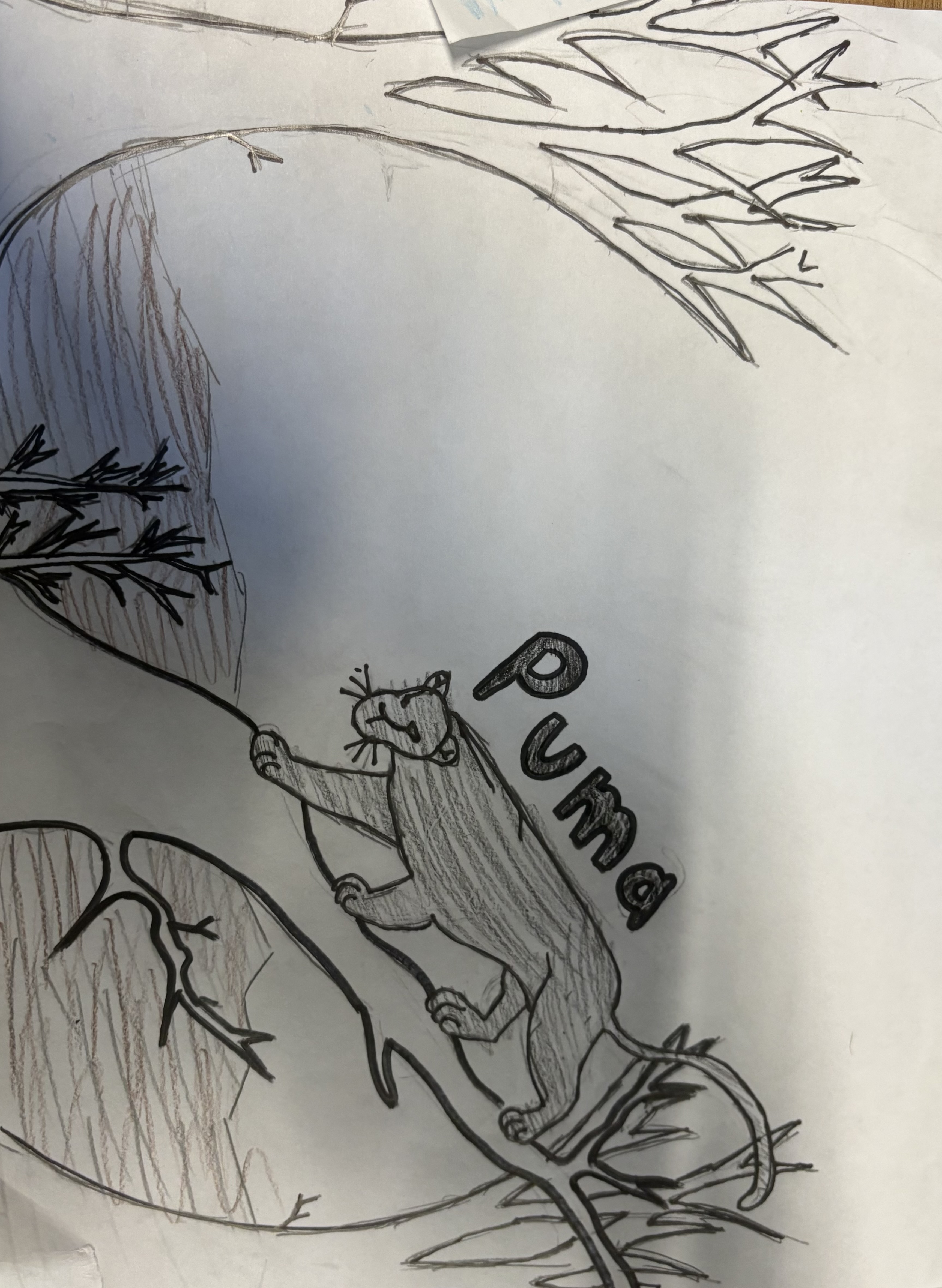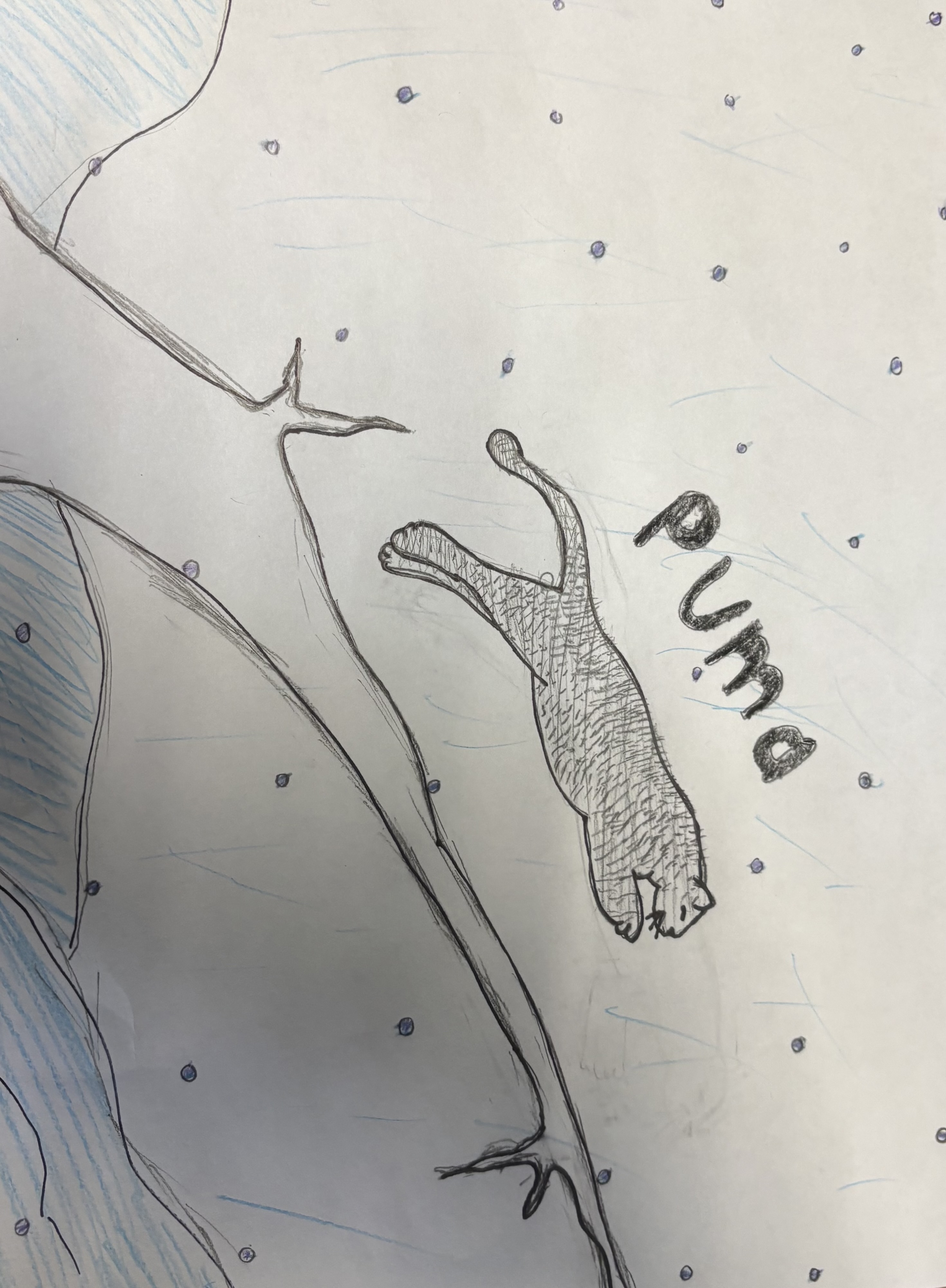 Currently, the puma regularly lives in environments such as rainforests and mountains with normal climates so it can climb and hunt fairly quickly and efficiently. Fast forward into the future, where we are living through yet another ice age, the puma’s habitat, which was once the jungle covered in greenery, has now dropped 100 degrees with snow reaching 7 feet high. The longer winters, super short springs, and colder climates make it a lot more difficult to survive for the puma population. However, over time, the puma adapts by growing twice its original body size, wider paws so it can walk on the thick snow, more body fat to stay warm, and developing lighter fur, a light grey-white, so it can blend in with its surroundings.