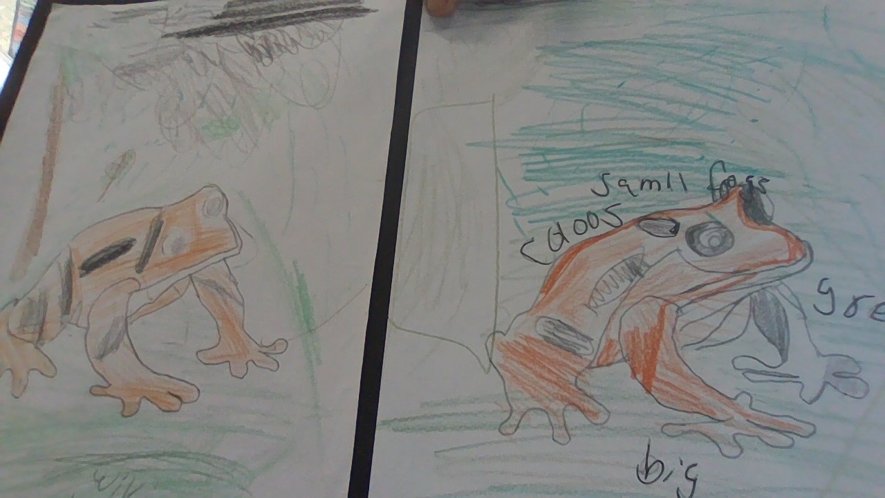 The animal I am writing about is Poison Dart Frog. Poison dart frogs are small frogs with bright colors. If the rainforest gets hotter and drier, their skin might become shinier or thicker to hold water. Their bodies might get smaller, their legs stronger to jump far. And their colors could change to hide better.
