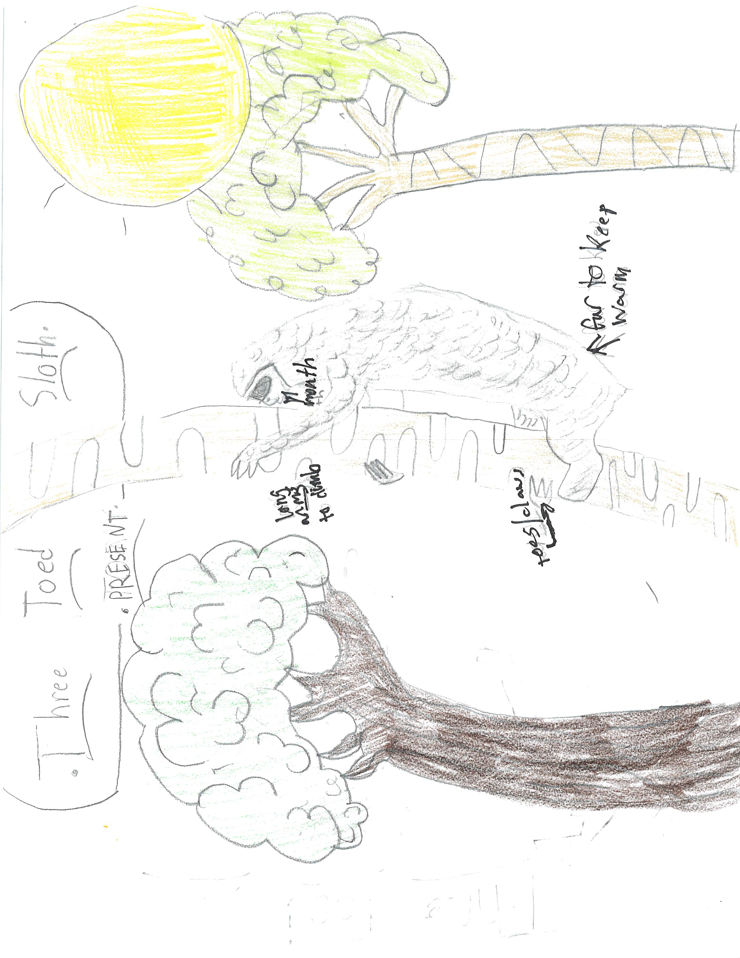 In the future the sloth will adapt more to living on the ground. I predict it will adapt the ability to eat a verity of leaves and plants. it will have a longer neck to reach higher plants. On its feet it will still have claws but shorter so that it can walk it will be faster so it can run from predators . They will be able to climb but they will not spend 90% of time because they have adapted to walking.