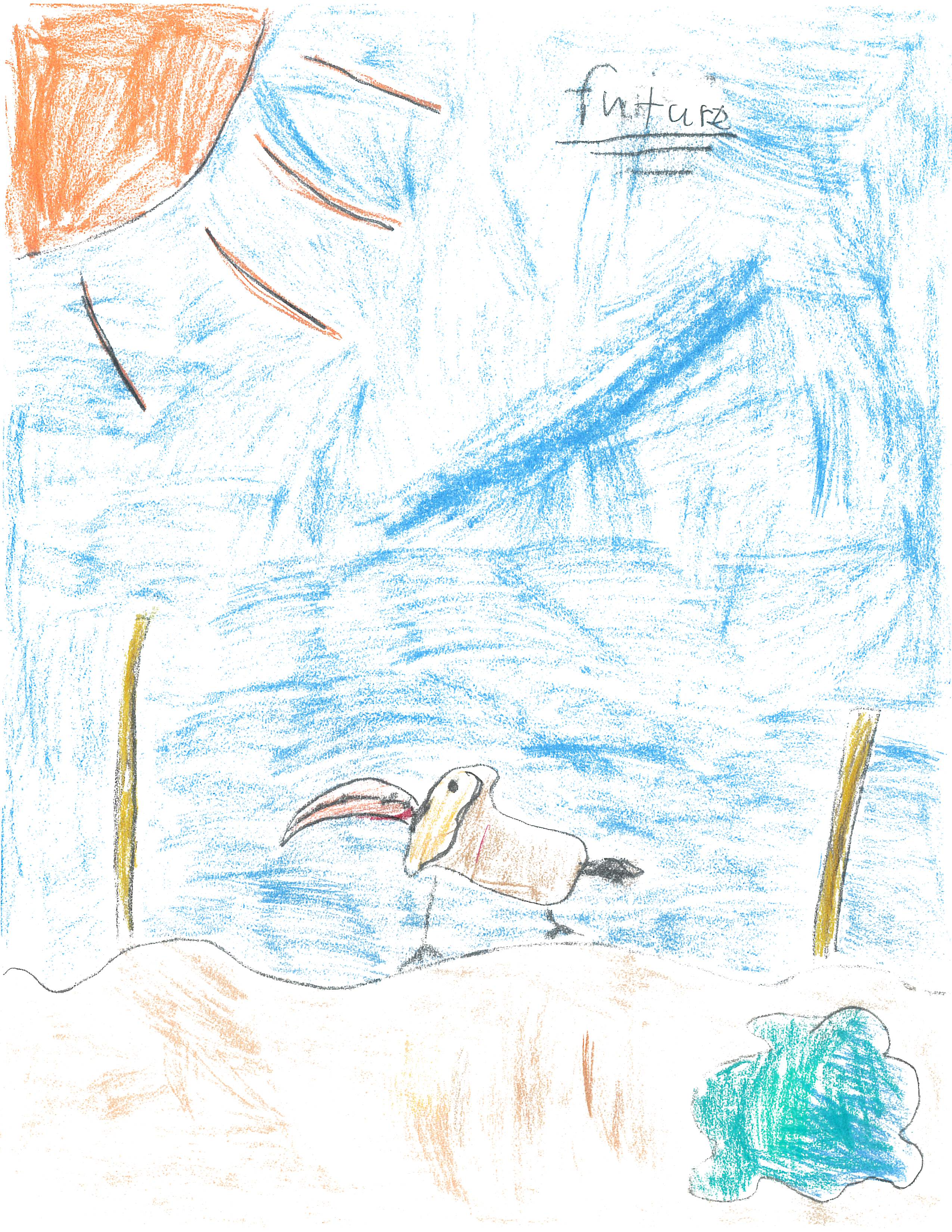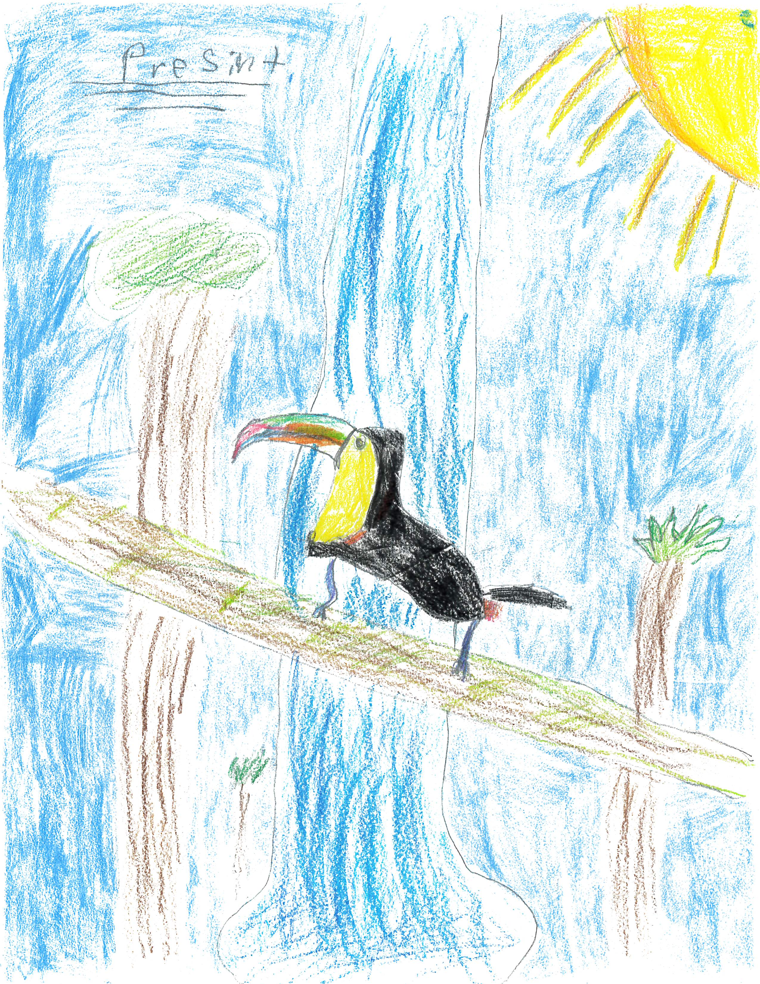 In a few thousand years, a toucan will be different. The colors might change. The colors would probably change to yellow and darker colors and yellow. They would have to go on the ground more often to get food and have more food than just fruit.