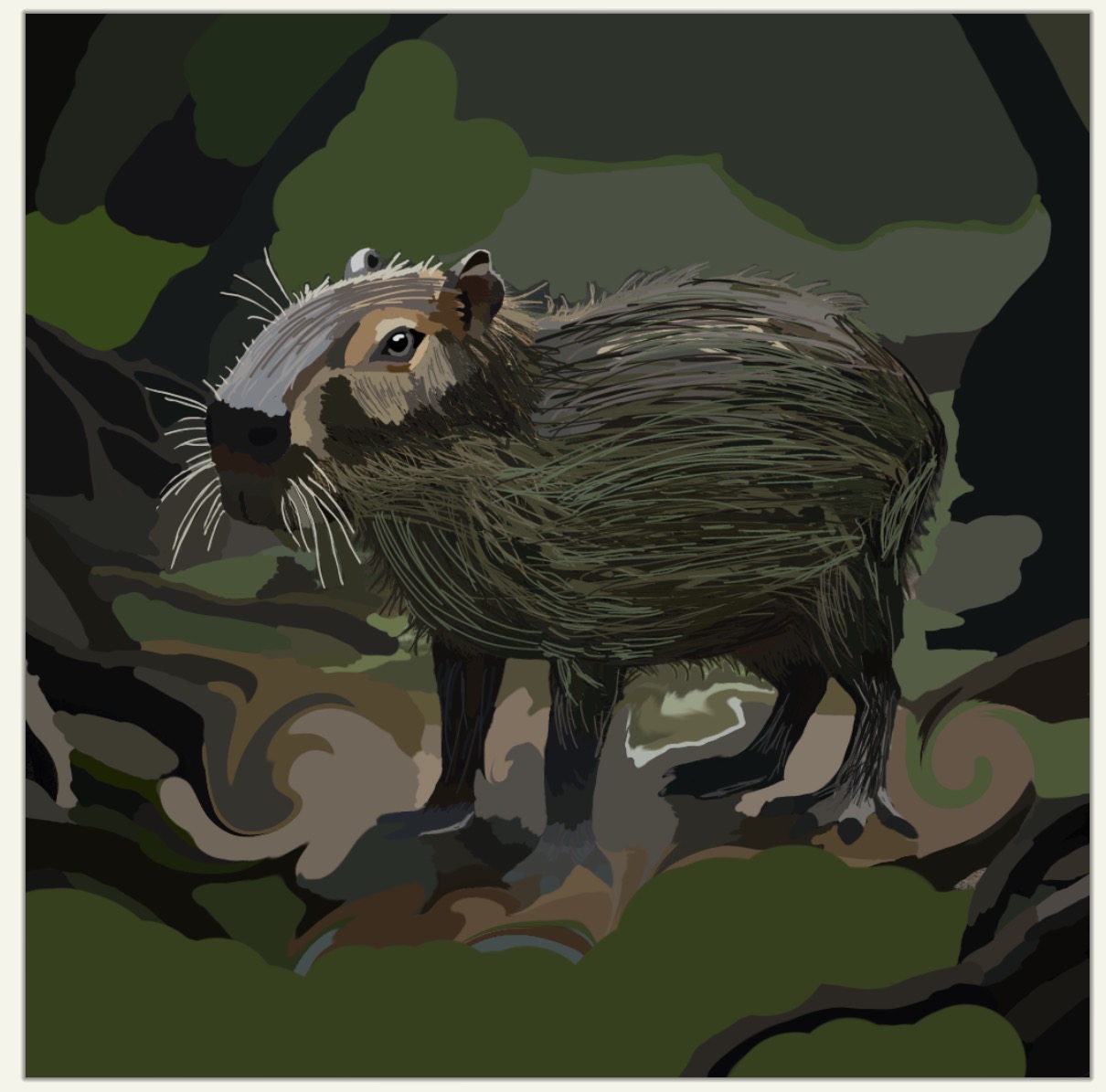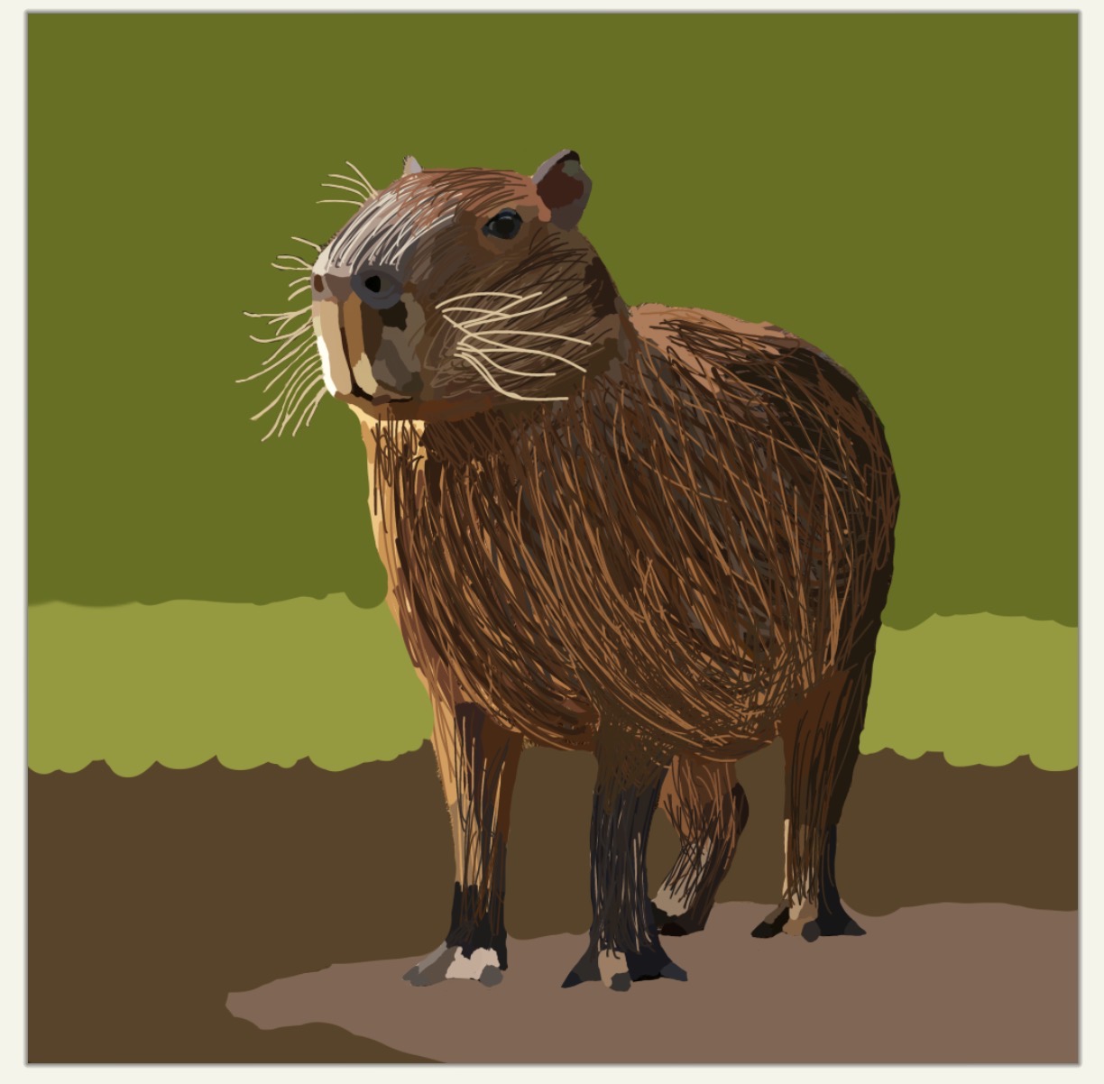 Right now capybaras are the largest living rodent. Capybara are barrel-shaped, have rough fur that is reddish-brown, are about 2ft tall, and their feet are slightly webbed which gives them the ability to swim. Capybaras live in swampy areas with lots of vegetation. In 500 years their fur can grow a greenish tint, and their ears, eyes and nostrils become slightly elevated. Their habitat will stay the same; they just have to work harder for food. In 1,000 years capybaras’ habitat becomes swampier and humid. Capybaras become smaller and their fur becomes green due to algae growth which enables camouflage. Vegetation that is poisonous to other animals wouldn’t be poisonous to capybaras. Capybaras’ habitat would either become dry causing water and vegetation to become scarce or their habitat might become flooded with water causing higher sea levels. In conclusion capybaras have changes that can affect their habitat and appearance.