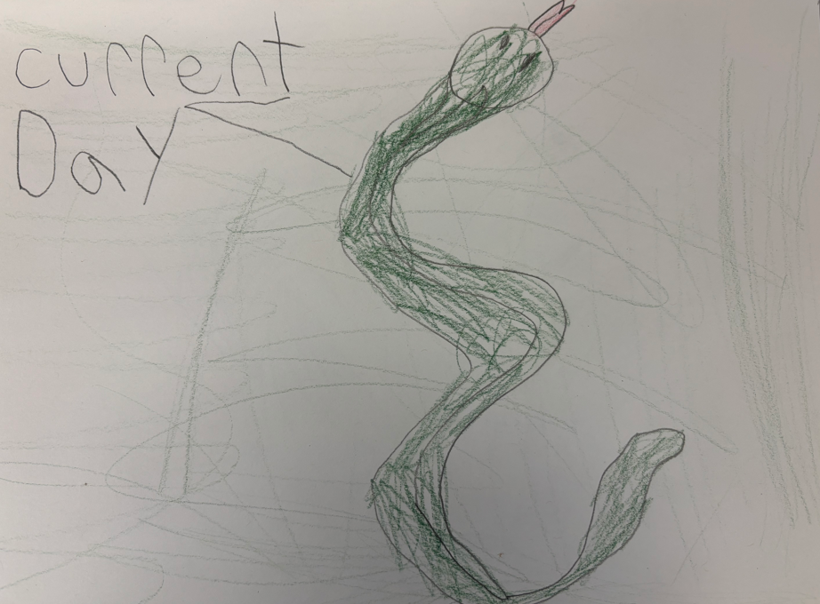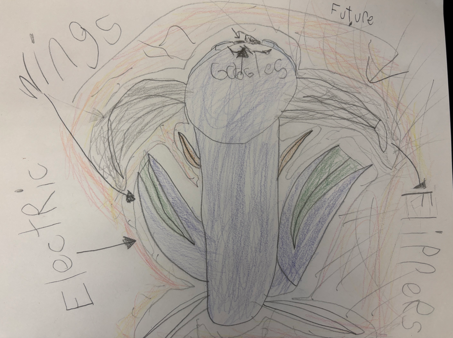 My animal is a King Cobra. I think the rainforest will turn into a flooded rainforest. King Cobra will be called Sea Cobra in the future. I changed to have electricity to defend itself from great white sharks. I gave it wings, flippers and goggles beside its eyes so when it comes up to breath the goggles stretch out over his eyes. The wings are so he can fly when the water gets to be too much. The flippers are so it can swim.