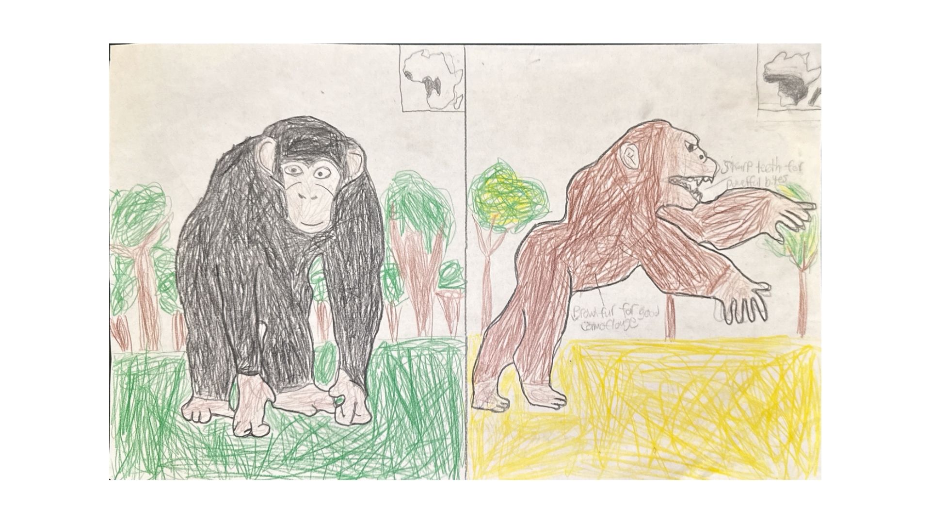 In this scenario, chimpanzees evolve into a path where they develop carnivorous digestive systems, razor sharp teeth, tan fur for camoflauge, and a size bigger than a human. They dominate central Africa and could become the world's dominant species if humans collapse or go extinct with their incredibly high intelligence.