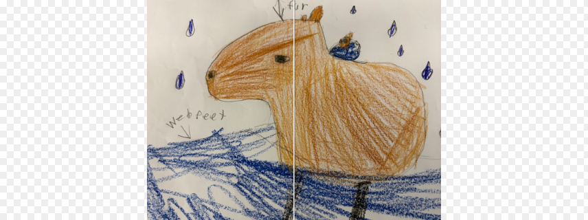 Capybaras live in the rainforest. They live partly on land and partly on water. They have long teeth and they eat grass and water plants. They have webbed feet to help them swim.