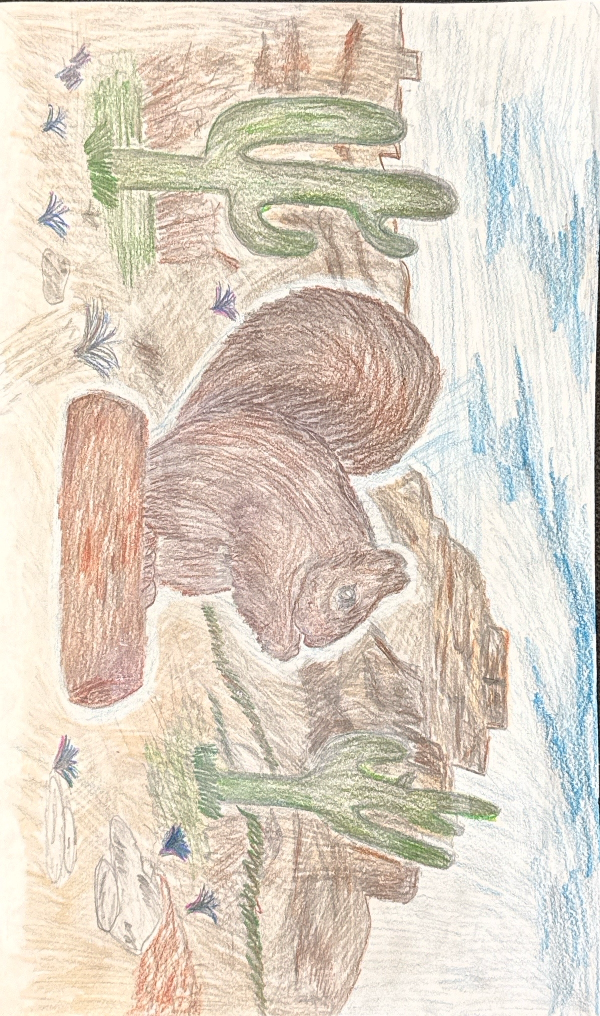 The Brazilian squirrel usually living in humid rainforests , now has moved to the desert due to habitat fragmentation and rising temperatures. In this new environment it is predicted to become even hotter and for there to be less rain, making the animal try to survive intense water scarcity and lack of dense shade. Living here is dangerous, so to survive the squirrel will most likely evolve larger, have lighter ears to radiate body heat and to camouflage against desert sand, it will also probably have a lot less fur because of the hot climate. With a high rate of environmental, the only animals that survive are the ones that have existing genetic tolerance to heat. If this change happens in 100-150 years, the creature will probably survive. But the habitat changes in 50 years or less the species would probably go extinct because it happens too fast.