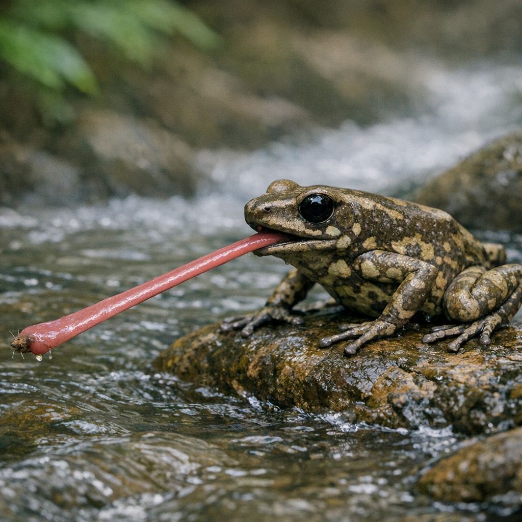 As the environment gets drier, they may develop webbed feet allowing them to stay in water to keep their skin soft and moist. Staying in water may also protect them from new predators such as birds as their coloring fades and their venom weakens. Their tongue may also get longer to access more food from further distances as their food population decreases.