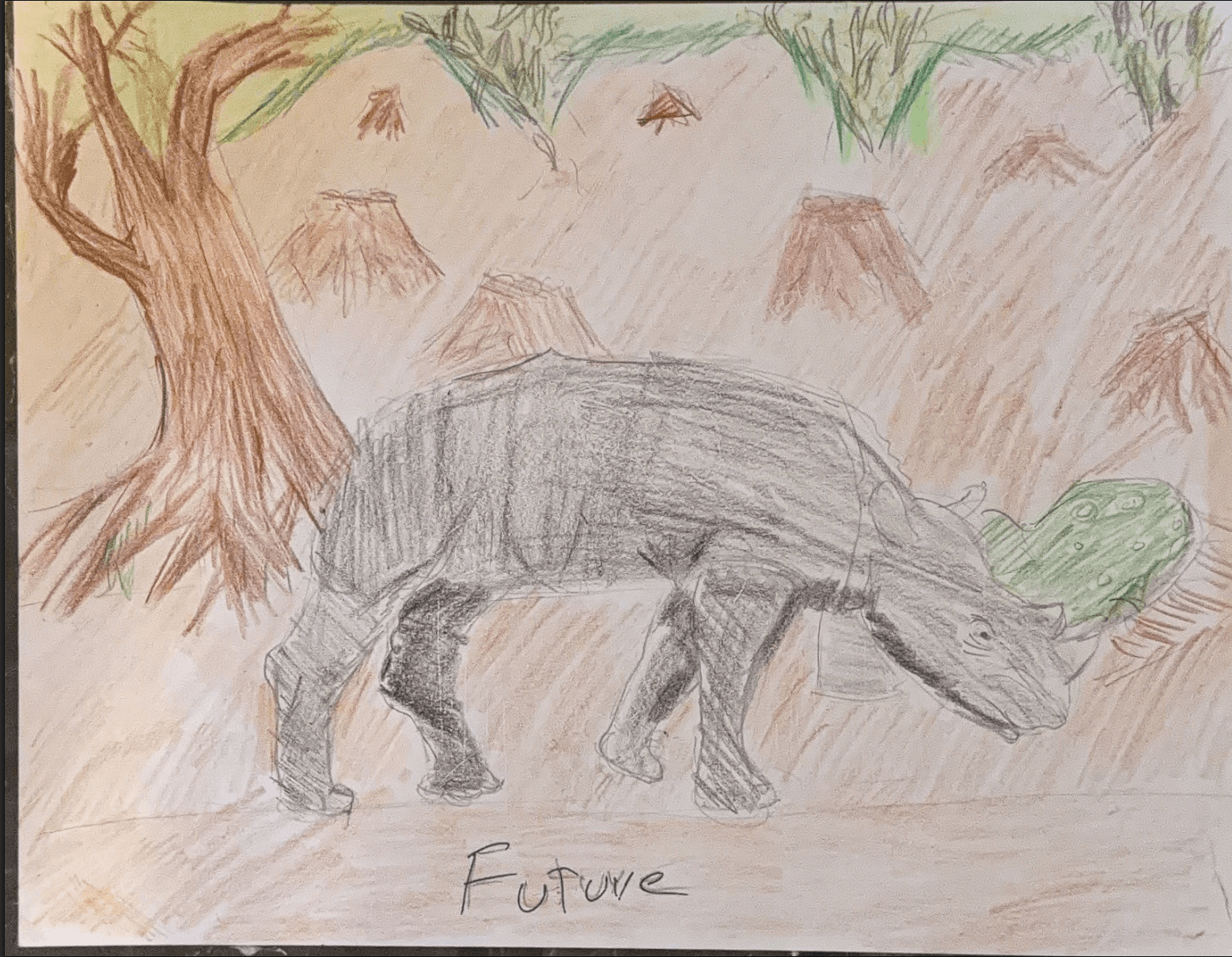 The rainforests of Sumatra are suffering greatly, still feeling the effects of what happened to them in the 18th and 19th centuries, as their rainforests have gone through deforestation and thus fragmentation of their habitat. There will also be increased temperatures with increased rainfall that could lead to floods. There will also be a change in types of trees/food that are grown. The new adaptations of the rhino will have thinner legs and shorter bodies for longer transportation and heat regulation. They will also have a change in behavior by increasing their range of living and only being active during the dawn and dusk to avoid the major heat. They would also improve their heat preservation in their cells and decrease the amount of time in between reproductive cycles. They would also develop a tolerance to higher elevations to find more vegetation/habitat.