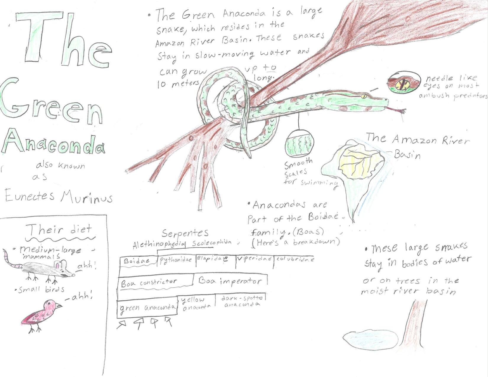 The Green Anaconda, or Eunectes Murinus, is one of the heaviest boas in the world, a dominant predator, feeding on small mammals, and small birds. However, due to climate change and deforestation, this large reptile will need to adapt to their new environment.
