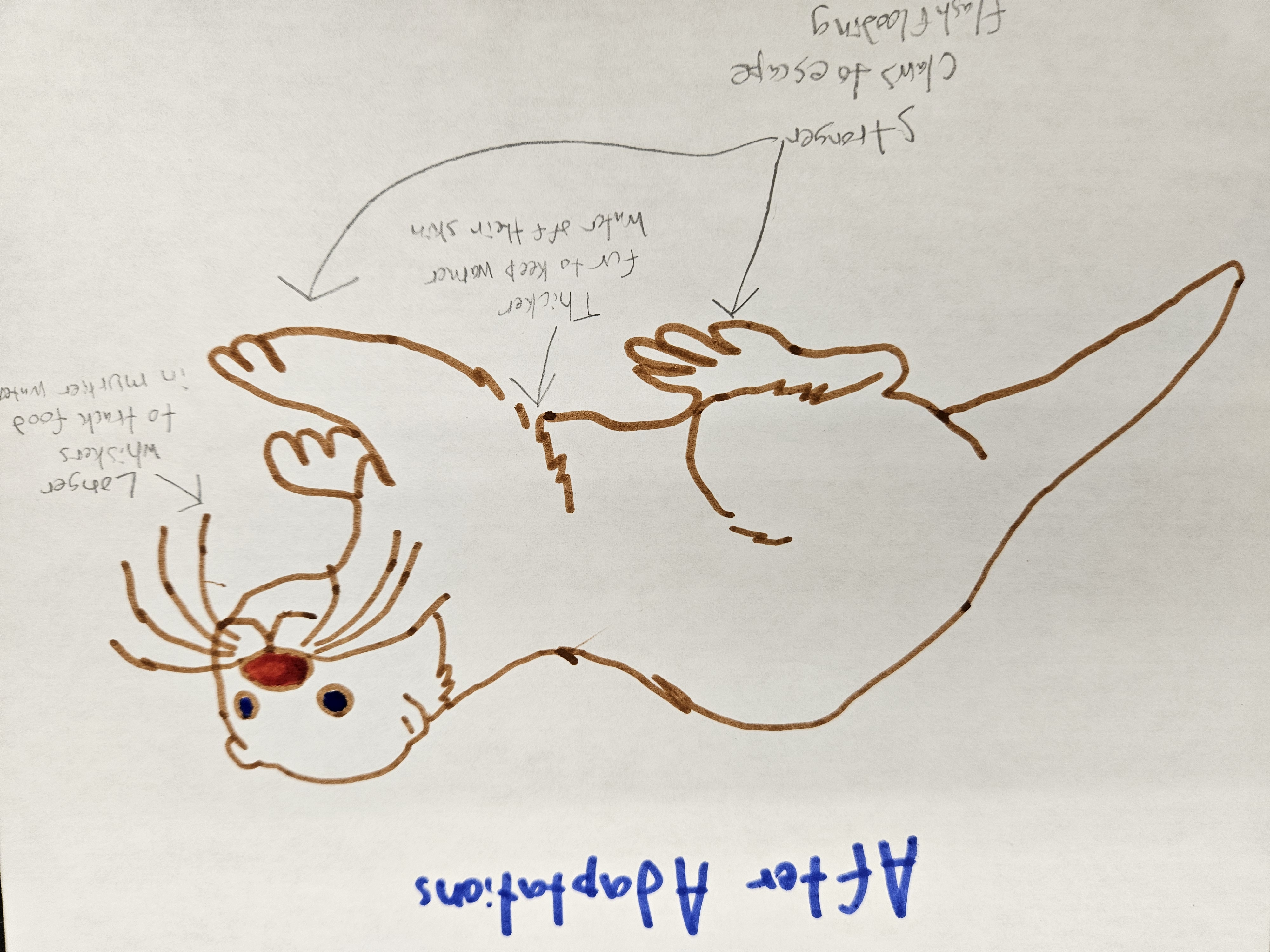 The Giant Otter is a mammal living in tropical rainforests all over South America including the Amazon Rainforest, and the Orinoco Rainforest. It is a very tough predator to have it can run up to 29 mph🤯 on land and can go up to 97 meters deep in water (318 feet). Their whiskers act like sonars as their sensitive whiskers can track down prey in murky water. They also stay warm with dense water-repellent fur that keeps water off their skin. To stay alive in the future, they will need to have even more dense skin because of the changing water temperature, the water will get murkier and they will need better sensing whiskers to get food. As a lot of their prey will go extinct now they will need to adapt to eating a wider variety of foods to stay alive.