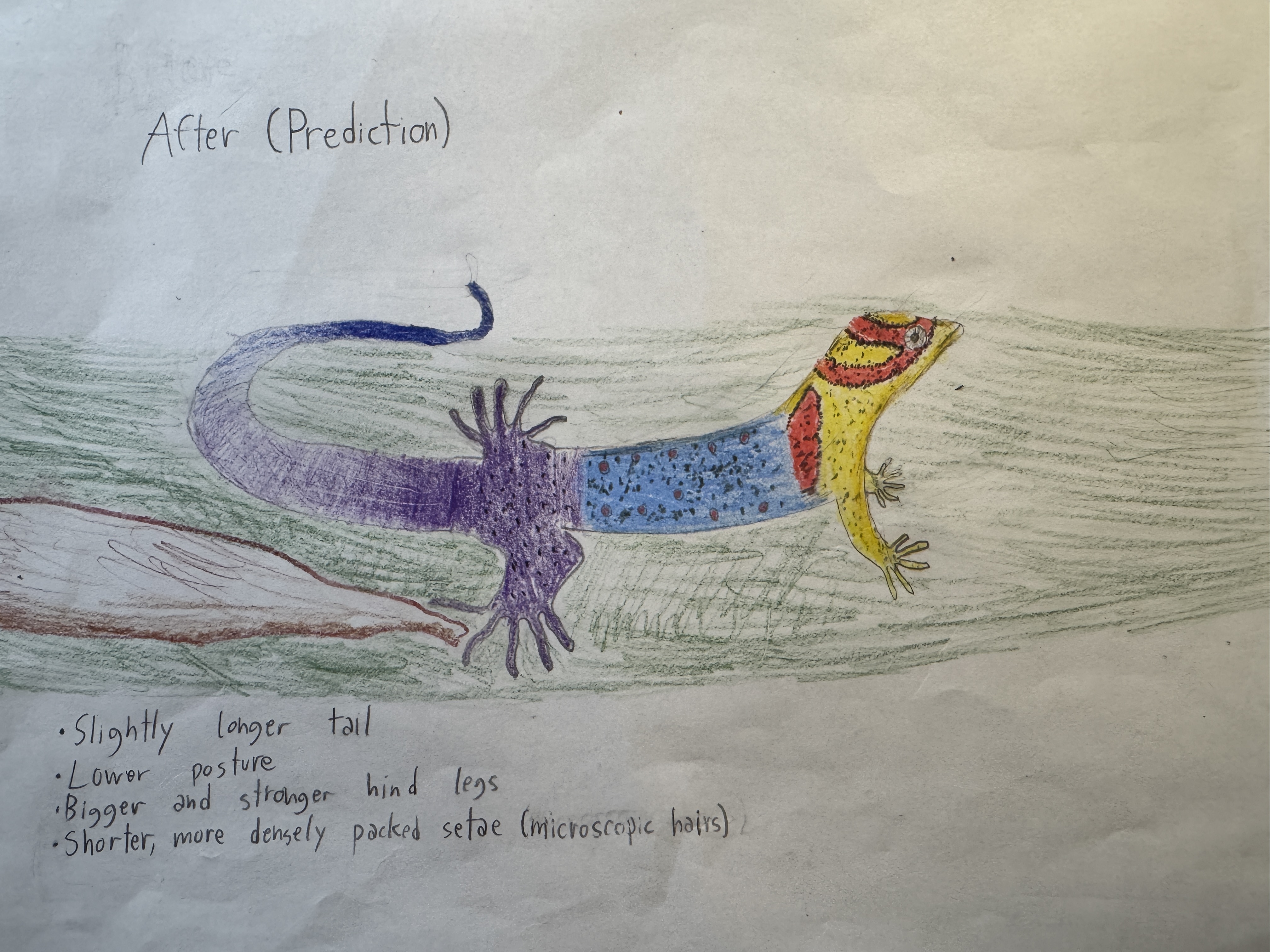 Gonatodes Humeralis’s present habitat involves trees and even human structures, but with deforestation and infrastructure conversion on the rise, G. Humeralis’s habitat is likely to turn to a bigger share of the ground and human infrastructure. With less to climb, G. Humeralis may adapt with bigger tails and stronger hind legs to facilitate higher speed and agility moving on the ground. Additionally, due to the increasing presence of human infrastructure, G. Humeralis would need to develop more effective setae configurations with even shorter, more densely packed microscopic hairs to increase surface area and therefore better utilize van der Waal’s forces so as to more easily scale human infrastructure that would typically be smoother than trees. By 2050, the Amazon could suffer a loss of 10-47% of all its rainforests which would severely affect most animals, but the Gonatodes Humeralis is highly likely to survive such a loss, being highly adaptable.