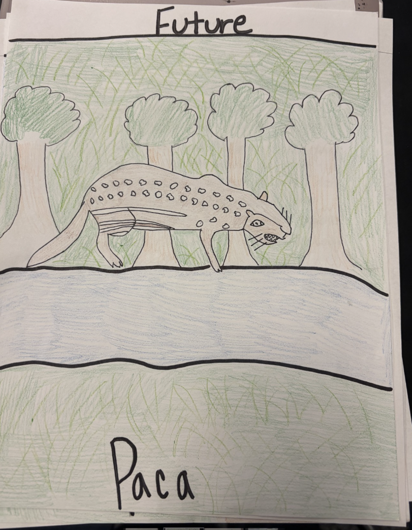 Deforestation is the clearing of trees and plants for industrial/ commercial use. Because of this, in the future, I predict that they will lose their habitat and sources of food. They will adapt to live in the water. Pacas are already good swimmers and use rivers to flee predators. However, I think they would eventually grow a tail to help their movement. Because of the change in surroundings for them, they would end up with sharp, narrow teeth.