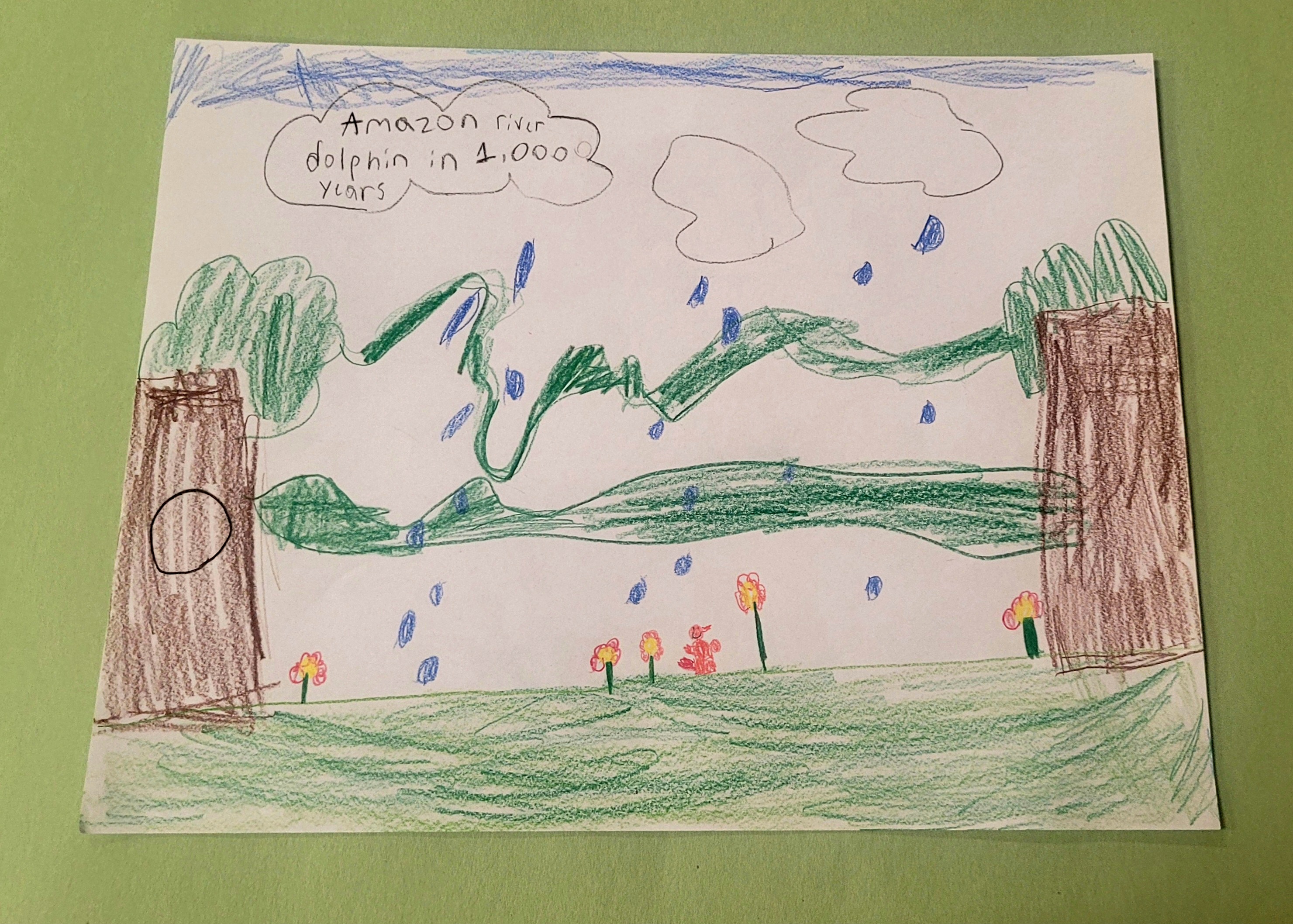 It will be all pink in 1,000 years by eating all of the food for it to survive. They will also be really tiny so the animals. I can not see. They will be camouflage in the jungle, the flowers are going to be highly blended in so the other animals don’t eat them. This is my estimate.