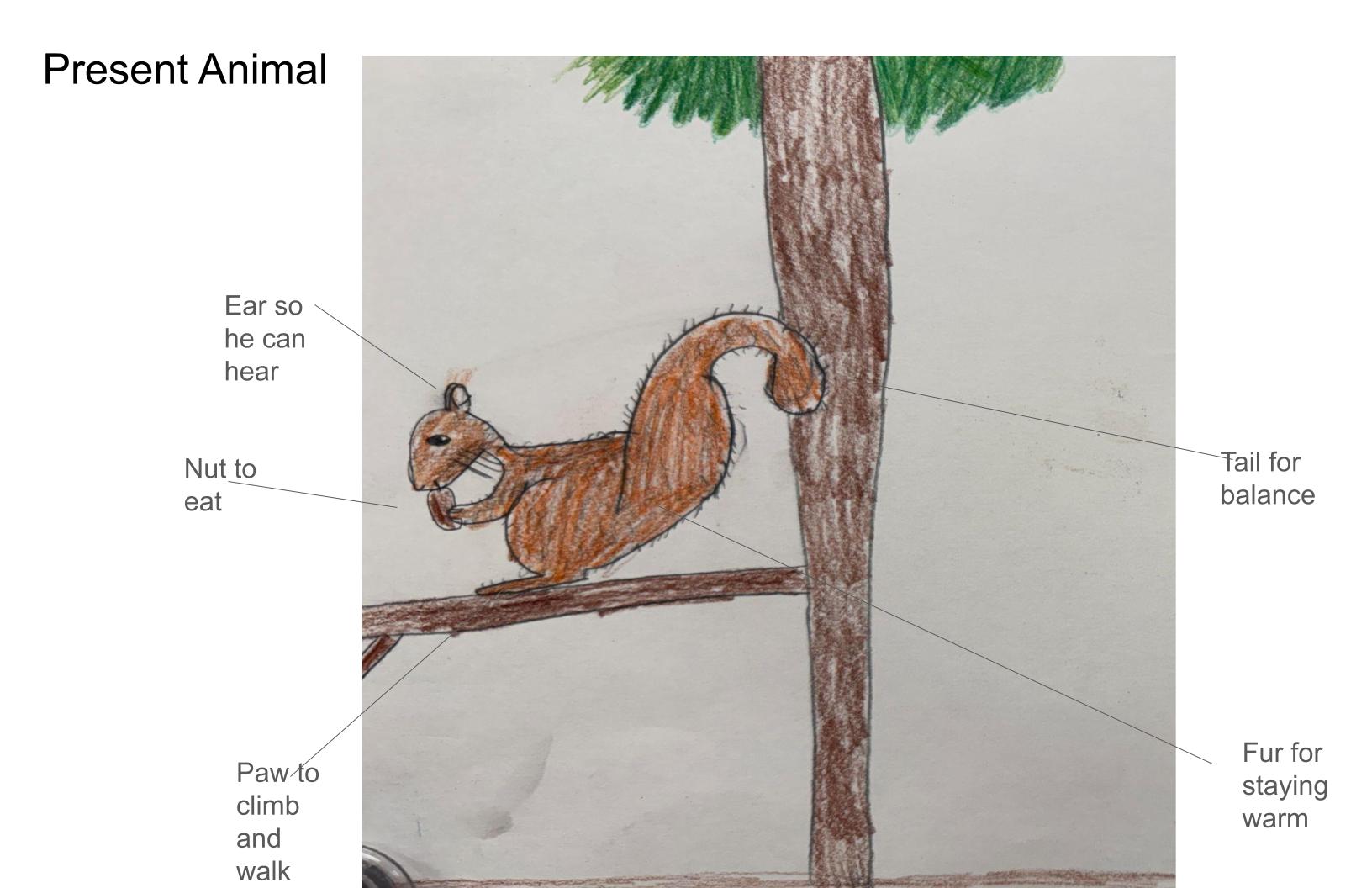 I made a drawing of a Southern Amazon red Squirrel and a drawing on an evolved Southern Amazon red Squirrel. I labeled each possible adaptation in the photos. The Southern Amazon red Squirrel's home environment gets flooded and the Southern Amazon red Squirrel needs to have some adaptations to survive.