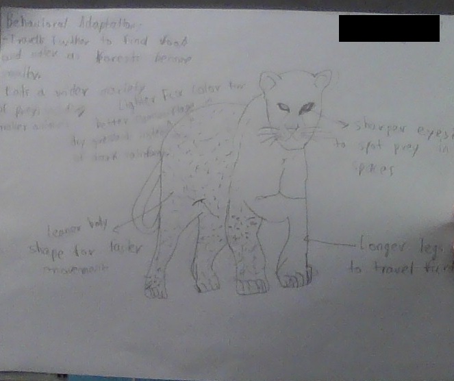 After the environment became hotter and forests became smaller, jaguars developed new adaptations to survive. Their fur became shorter and thinner to regulate body temperature, and they became more active at night to avoid heat. They evolved longer legs and leaner bodies to travel farther for food and water. Their paw pads became thicker for hot ground, their fur became lighter for camouflage, and their eyesight became sharper to spot prey in open areas.
