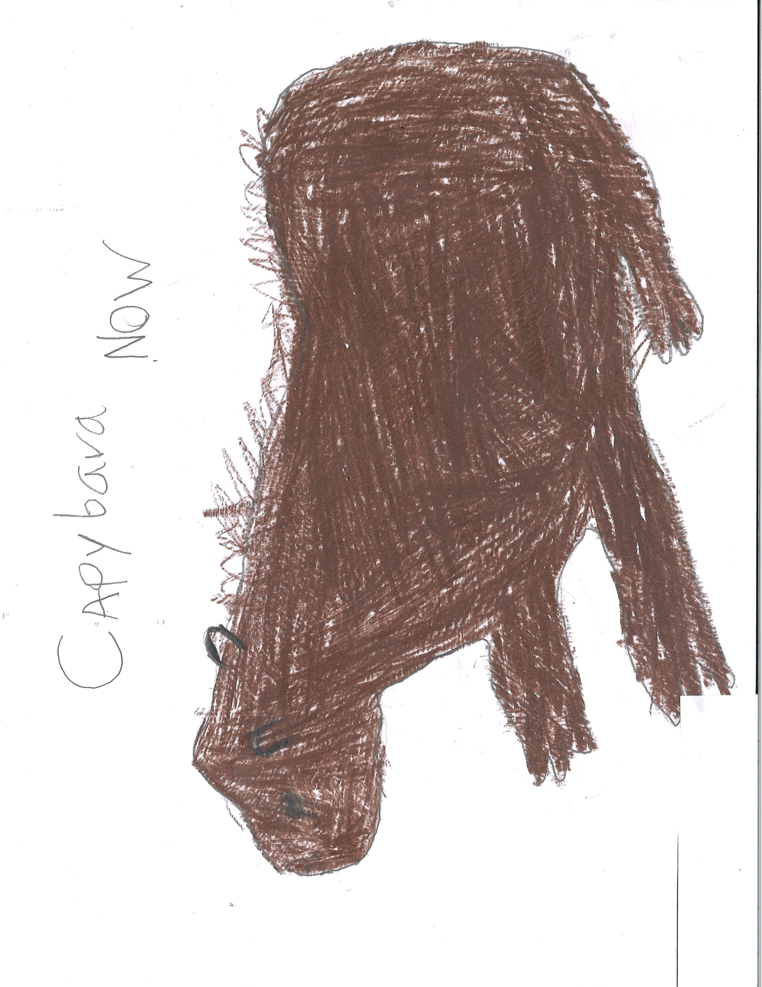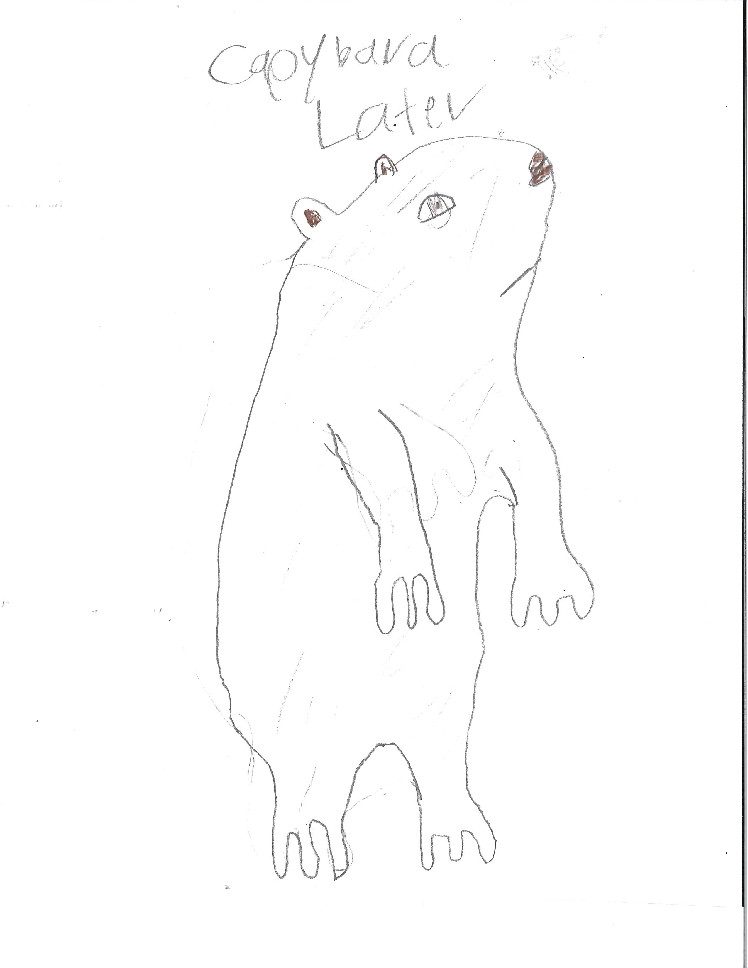 My capybara will have stronger legs and will be able to walk on its back legs because the rain forests will soon be mountains. Secondly the capybara will eat grass because there is no more lettuce. Finally my capybara will be white because the mountain is always snowy. That is my capybara in 1000 years