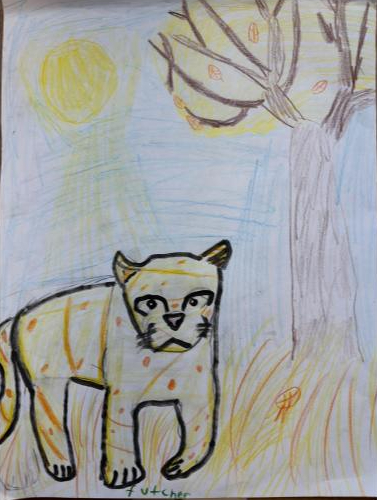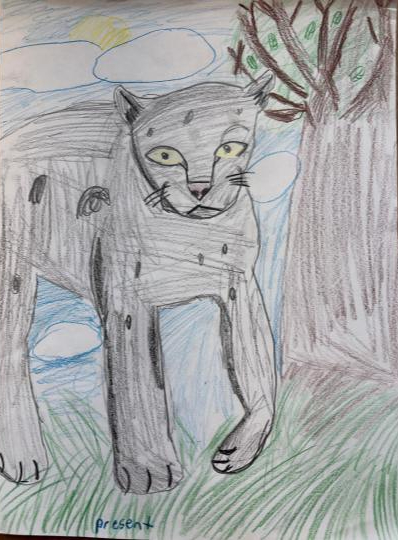 My animal will change to be smaller and have spots and stripes. It will have to be smaller because there will be less food and having a large body requires a lot of food. It will be yellow and orange.