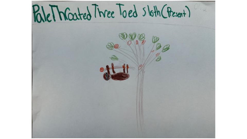 The Pale-Throated Three Toed Sloth has a light furred neck. It’s adaptations are 1. Long nails for climbing trees. 2. It has light fur to blend in with trees. 3 It lives in the rainforests of Eastern Venezuela,Brazil, north of the amazon river. Due to climate change it will rain more and the trees will grow taller and more leaves will grow so the sloth will go higher up the tree. It eats leaves from the Cecropia tree. It protects itself by, long nails and staying high up in the tree. Their habitat is hot,wet,rainy and dark.