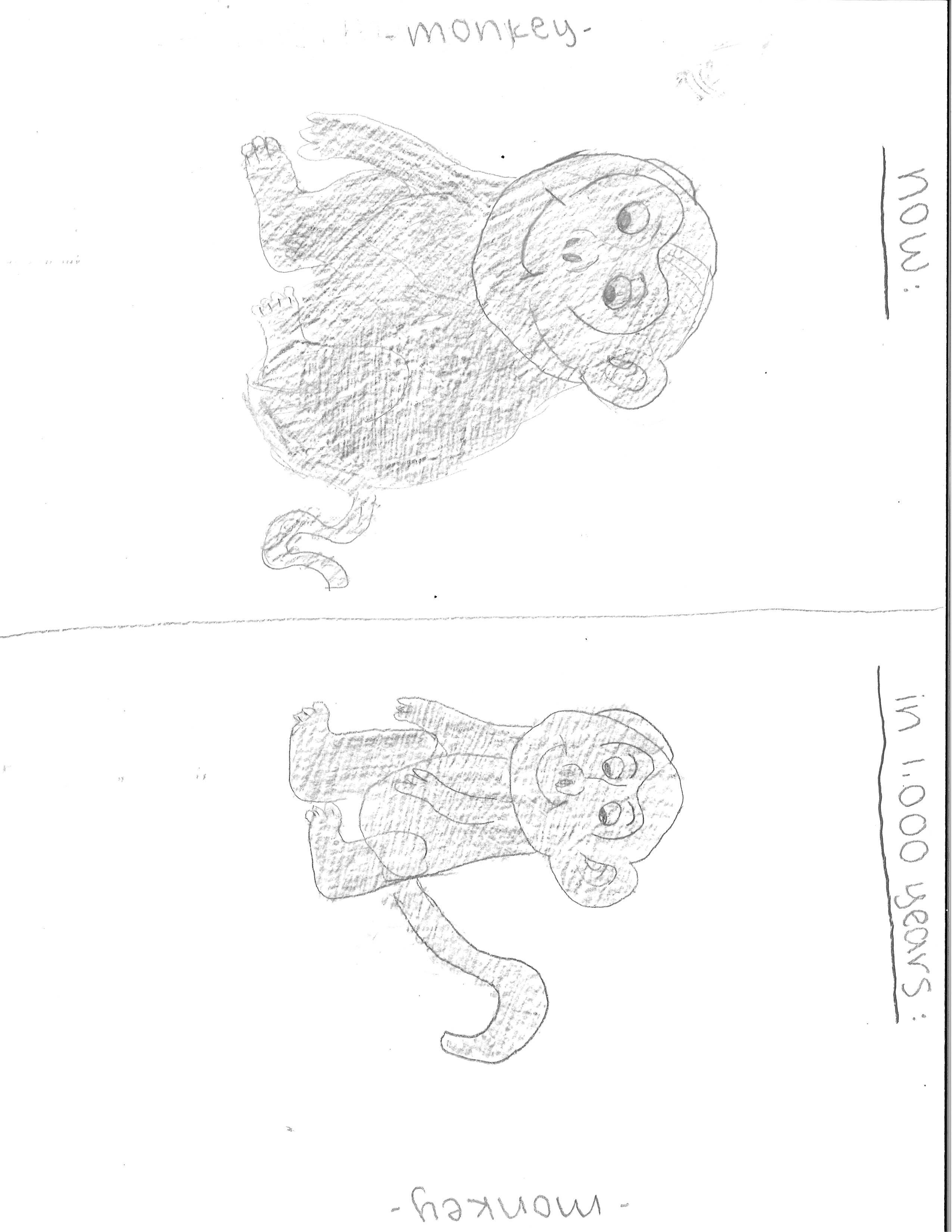 My prediction for monkeys changing in 1,000 years is getting really small. Right now they’re pretty normally sized and aren't too big but also not too small. To add more description to that it will have the body only getting smaller, for the head and tail will be bigger than the body. In addition for this to happen jungles and their environment would have to have less food. Lastly, that would happen because there will be less trees, and bananas have and will grow off of trees. All in all this is what I think will happen to monkeys in 1,000 years.