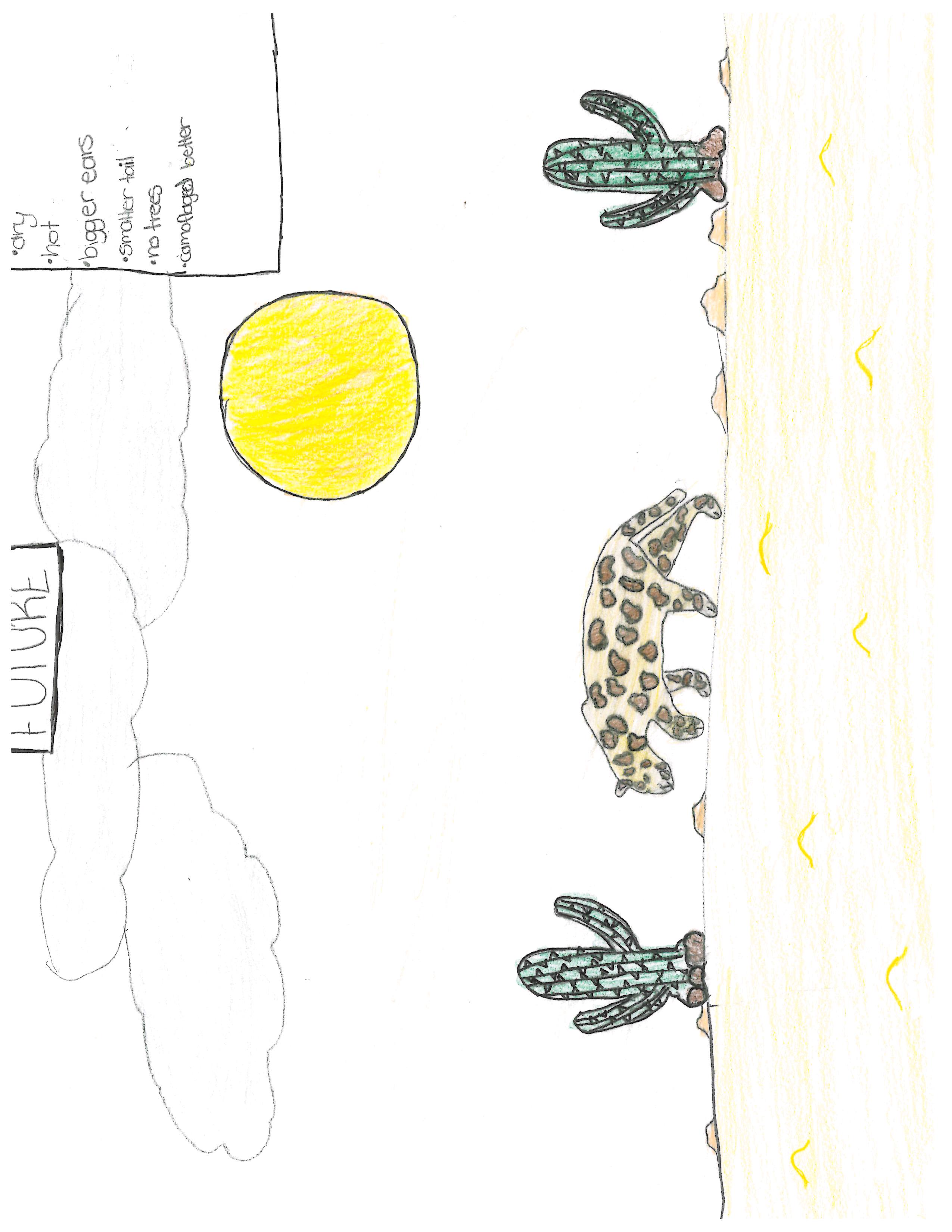 The Amazonian Jaguar’s future habitat may consist of dry land due to deforestation and climate change. Temperatures and sea levels will most likely rise. Pollution will change from short-term to long-term. There will be less animals which means the Jaguars will have to adapt to less food and less meat. Since the area will be dry the land will have less vegetation and more shrubs. There will most likely be frequent droughts and wildfires which will alter the structure of the forest. The jaguars will have to adapt to these changes by having bigger ears to help them survive by functioning as a crucial adaptation for thermoregulation and they will have less fur because of hot weather. Also as the temperatures rise the larger, thinner, ears will prevent overheating. Jaguars will change to camouflage better. Their bodies will become smaller and less stocky due to food shortages.