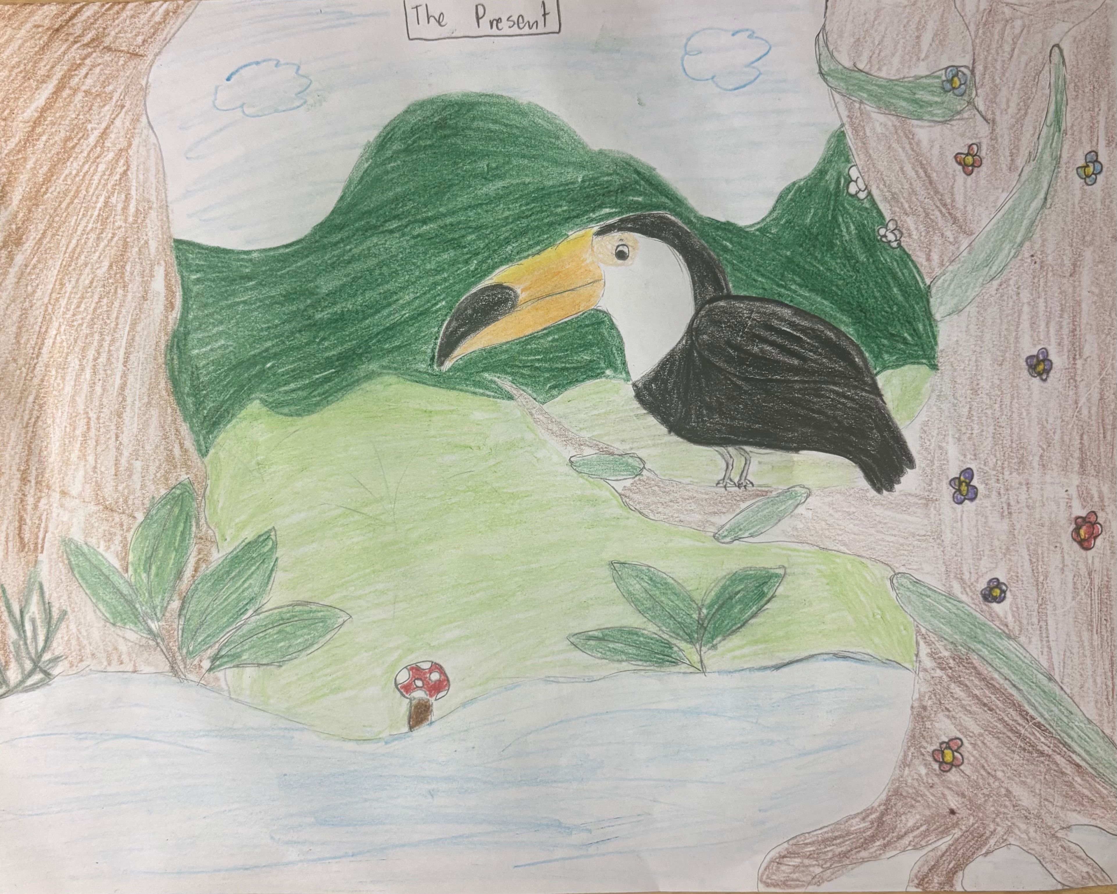 The toucan thrives in a tropical region in South America called the Amazon Rainforest. Brightening the forest with its infamous long and colorful beak, used to reach fruits high up in the trees and blend in with the fruits; lushes black feathers used to blend in with shadowy areas of the rainforest; using flight to get around short distances; regulating body temperature to avoid overheating. Enjoying their life but reality is, the Amazon rainforest is slowly disappearing due to deforestation and using the land for agriculture. As the fruit disappears, the beak is no longer needed, causing a shorter and sharper beak to hunt smaller animals. Less trees, larger wingspan is needed to fly across miles of desert land. Hotter temperature, smaller body to regulate body heat faster throughout the body. Less hiding spots, their skin color would need to change to be able to blend in with the environment.